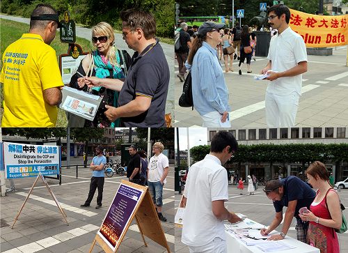 【明慧网二零一四年七月二十一日】二零一四年七月十八至二十日,瑞典部份法轮功学员在首都斯德哥尔摩市中心举办一系列反迫害讲真相活动。纪念法轮功反迫害十五周年,责令中共立即停止对法轮功的残酷迫害;呼吁民众尽快了解真相,制止迫害,站到正义一边。