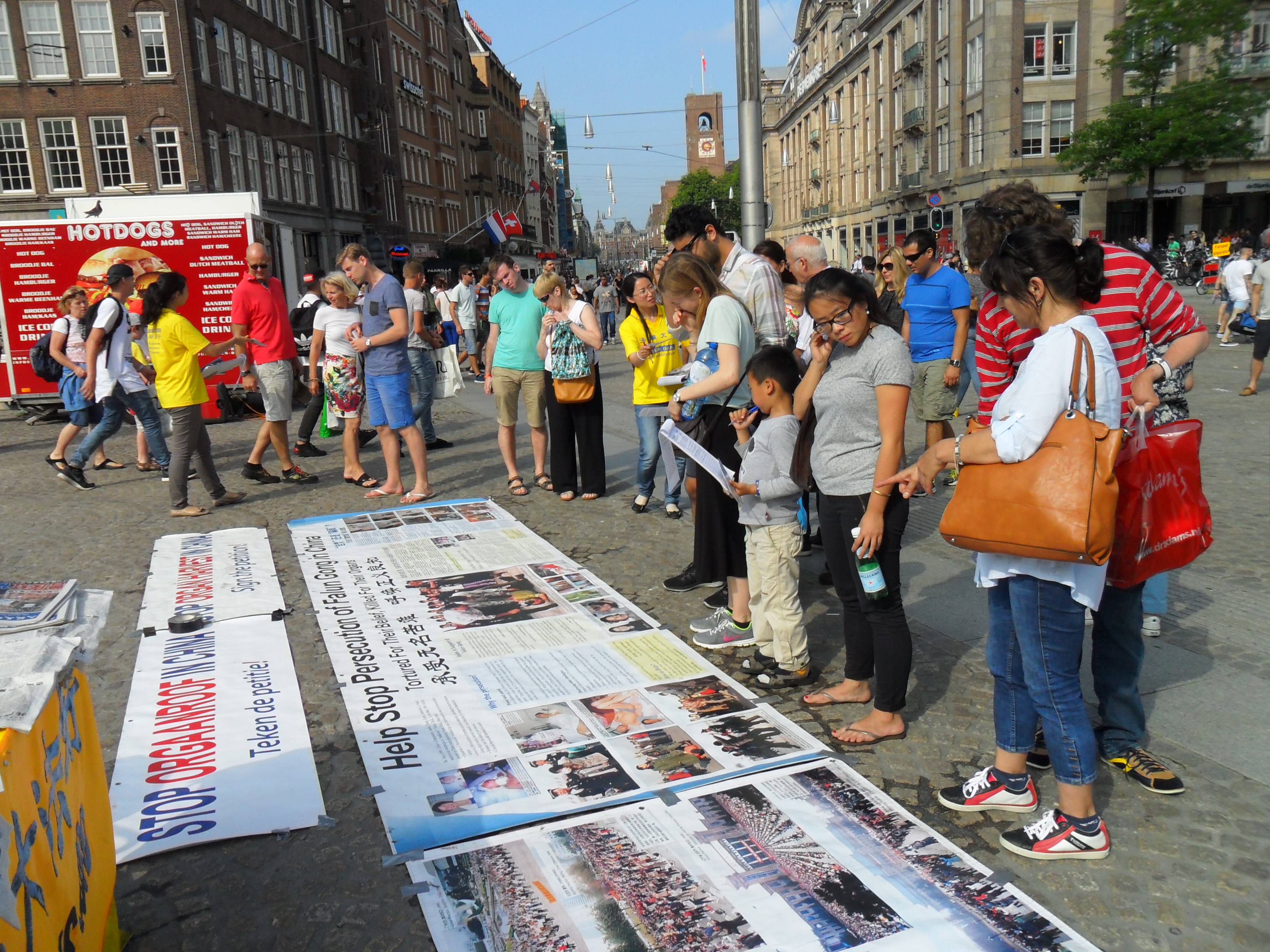 ![]() 纪念和平反迫害十五周年,荷兰学员在阿姆斯特丹著名的达姆广场设立真相点,大批游人驻足阅读真相图片,了解真相。 |