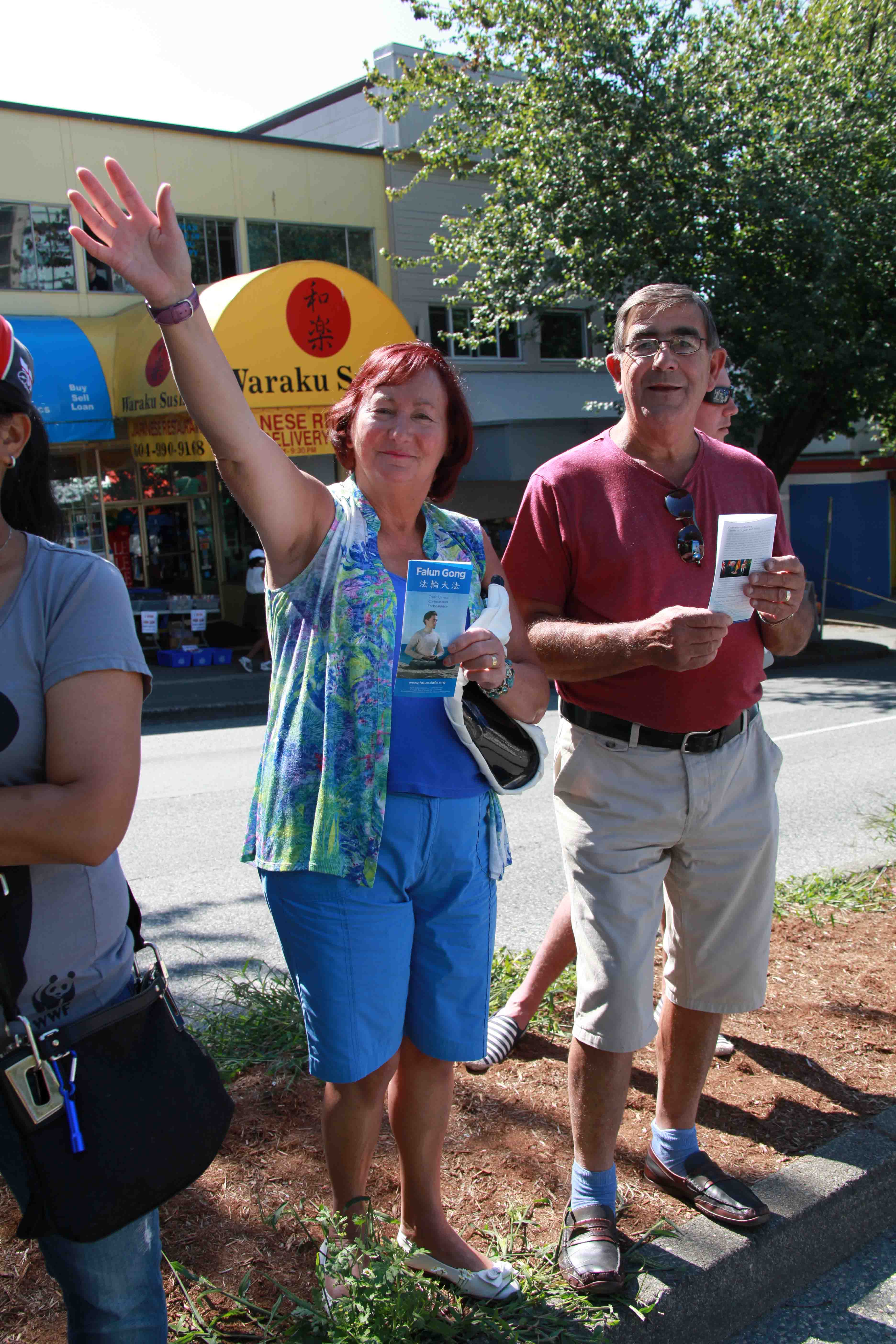 北温哥华市居民彼得(Peter)先生表示,很开心看到游行里有不同的文化展示出来,他自己对音乐情有独钟,他指着天国乐团说:“他们演奏的非常好,所选取的乐曲很适合在游行中演奏。他们没有看任何的乐谱,全靠记忆来演奏和互相配合,表现出色,我对此非常感谢”。不过他说:“我很遗憾,去年没看到他们的演出,我了解一些法轮功,我知道演奏者们音乐的背后有信仰的内涵,所以非常独特,我特别感激这一点,非常感谢。”彼得先生拿出收到的法轮功真相传单,表示他回去后会继续阅读。