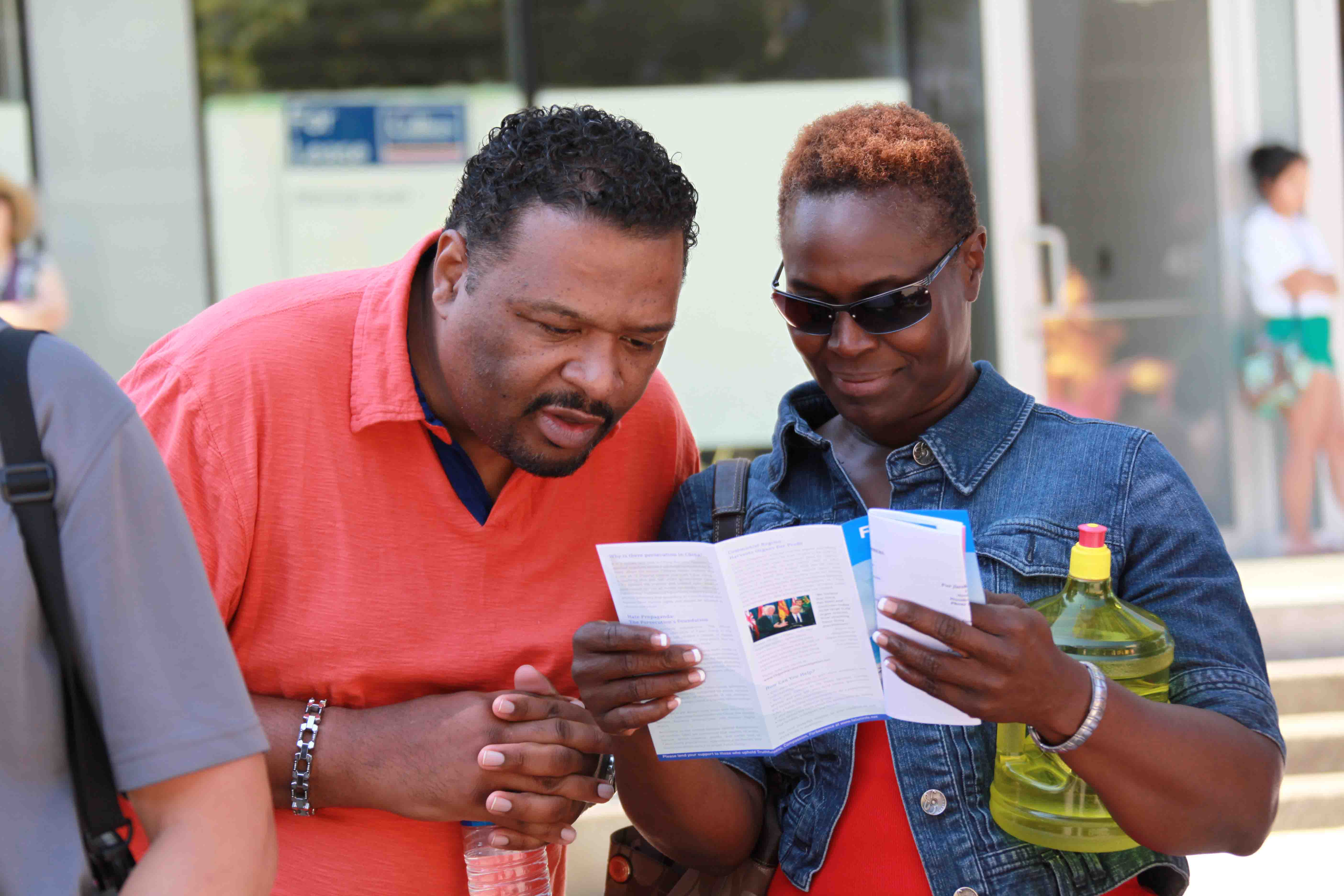 玛丽(Mary)女士手里拿着法轮功真相传单说,自己第一次见到法轮功的游行队伍,她喜爱法轮功的游行队伍的表演,服装色彩鲜艳,所以她接了法轮功真相传单,她会仔细阅读。