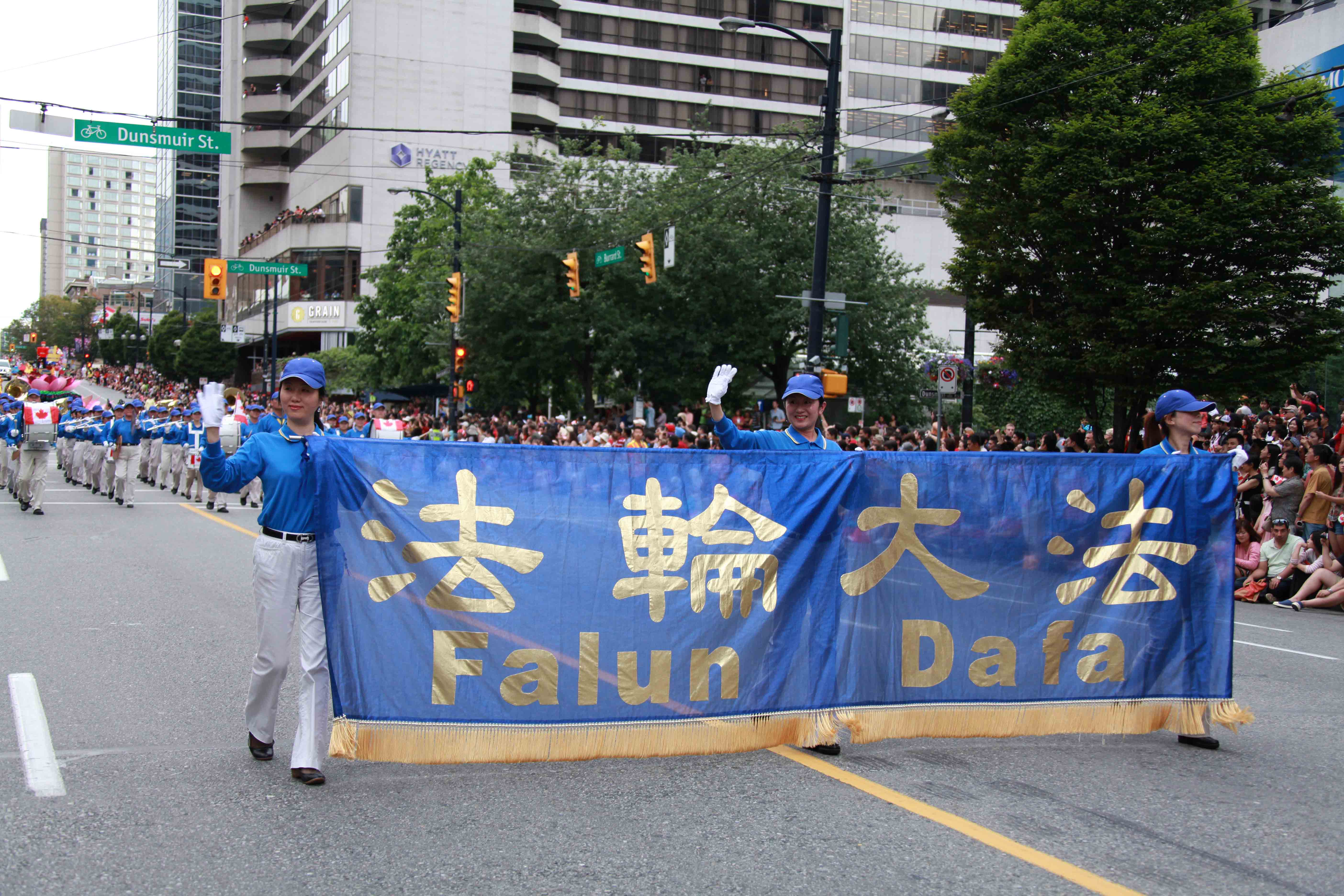 【明慧网二零一四年七月三日】(明慧记者张然加拿大温哥华报道)二零一四年七月一日是加拿大一百四十七周年国庆,加拿大法轮功学员参加了温哥华当天举行的两个盛大游行,列治文国庆暨三文鱼节游行和温哥华市中心的国庆游行,法轮功的美好感动了数万现场观众的心灵,并获得列治文游行第一名,加拿大皇家骑警嘉宾警官称,在加拿大一百四十七周年国庆之际欢迎法轮功带来美好,有大陆华人赞叹:“法轮功太了不起,太震撼人心了,法轮大法好!”