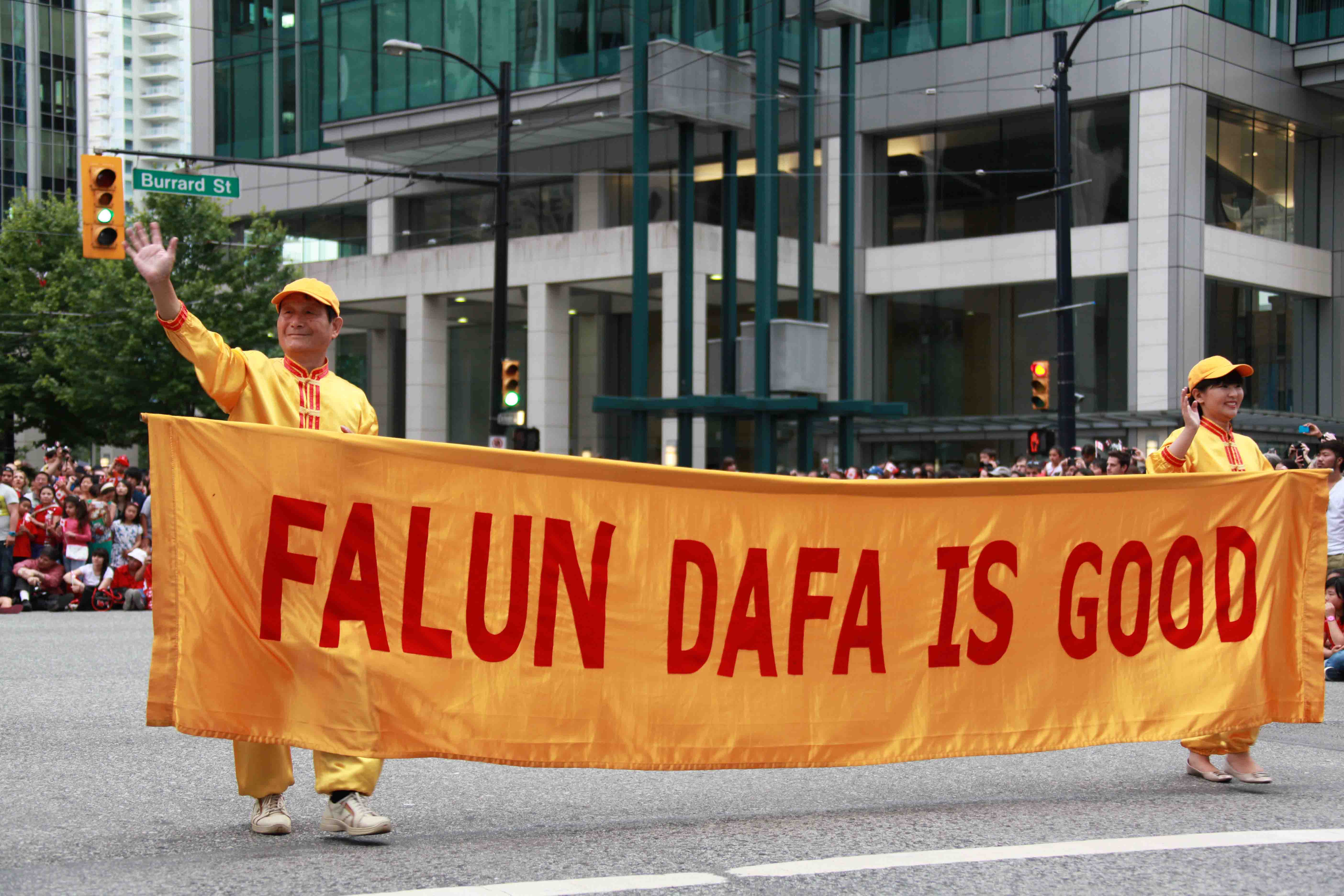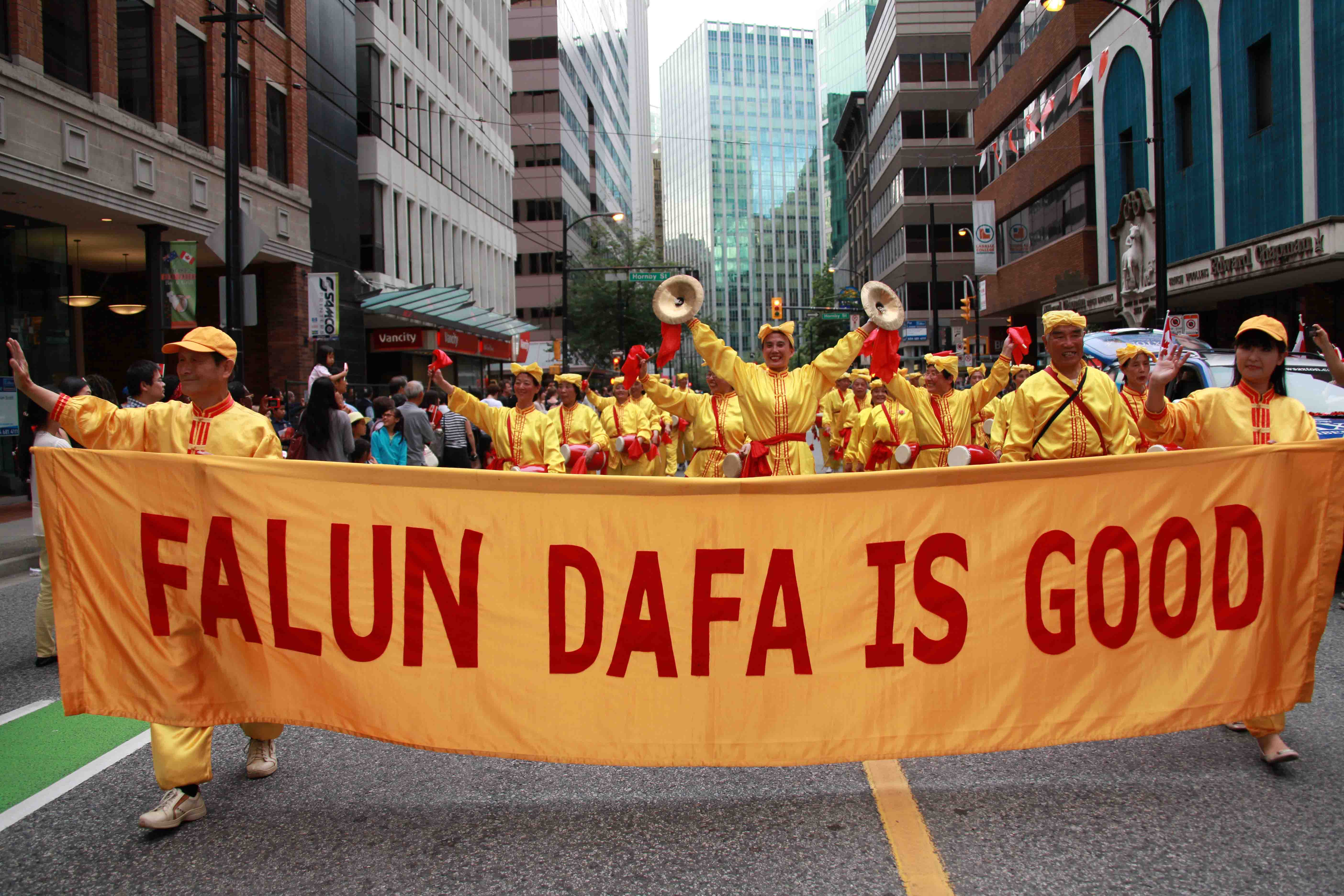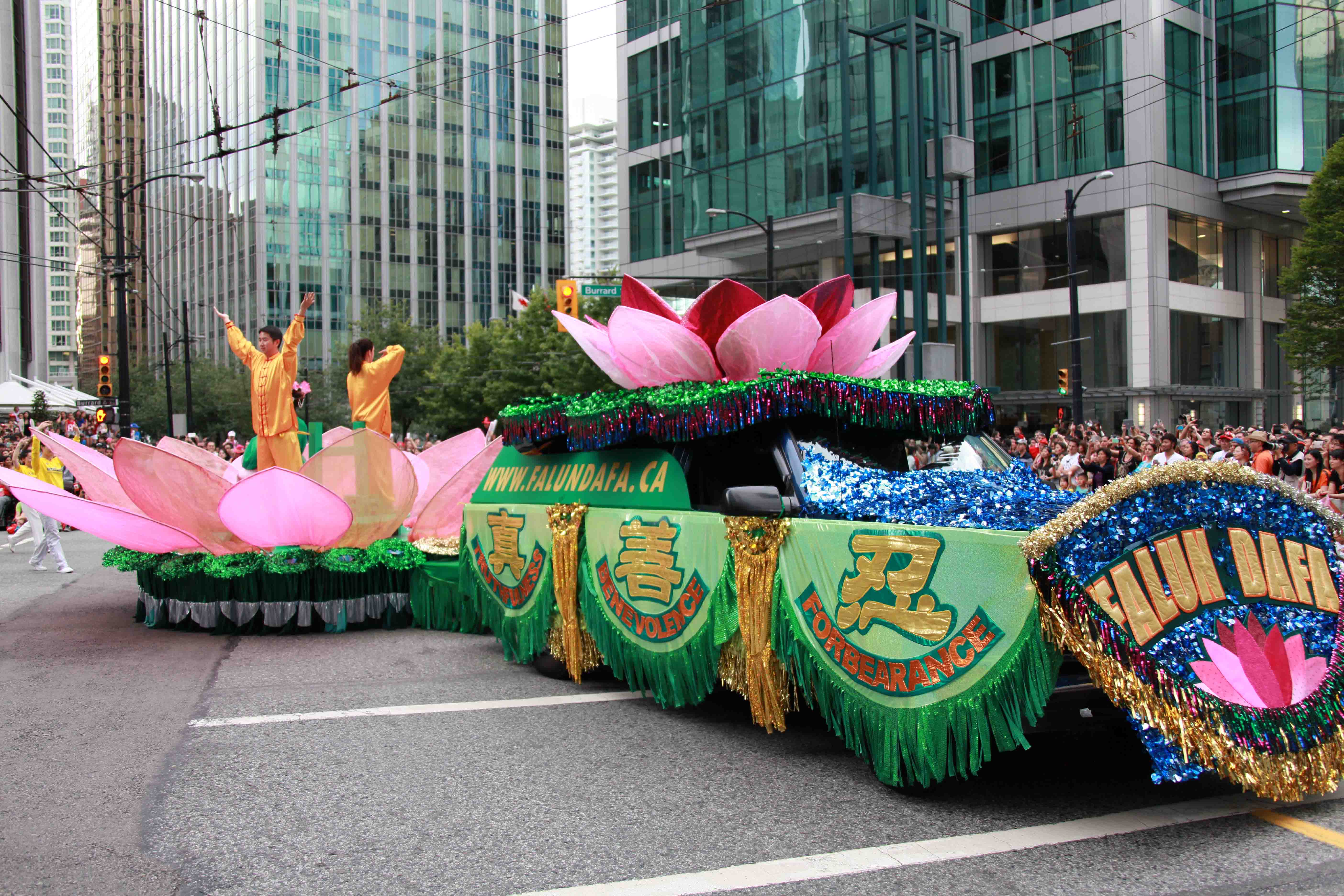 温哥华市中心举行盛大国庆游行,温哥华法轮功学员游行队伍阵容庞大