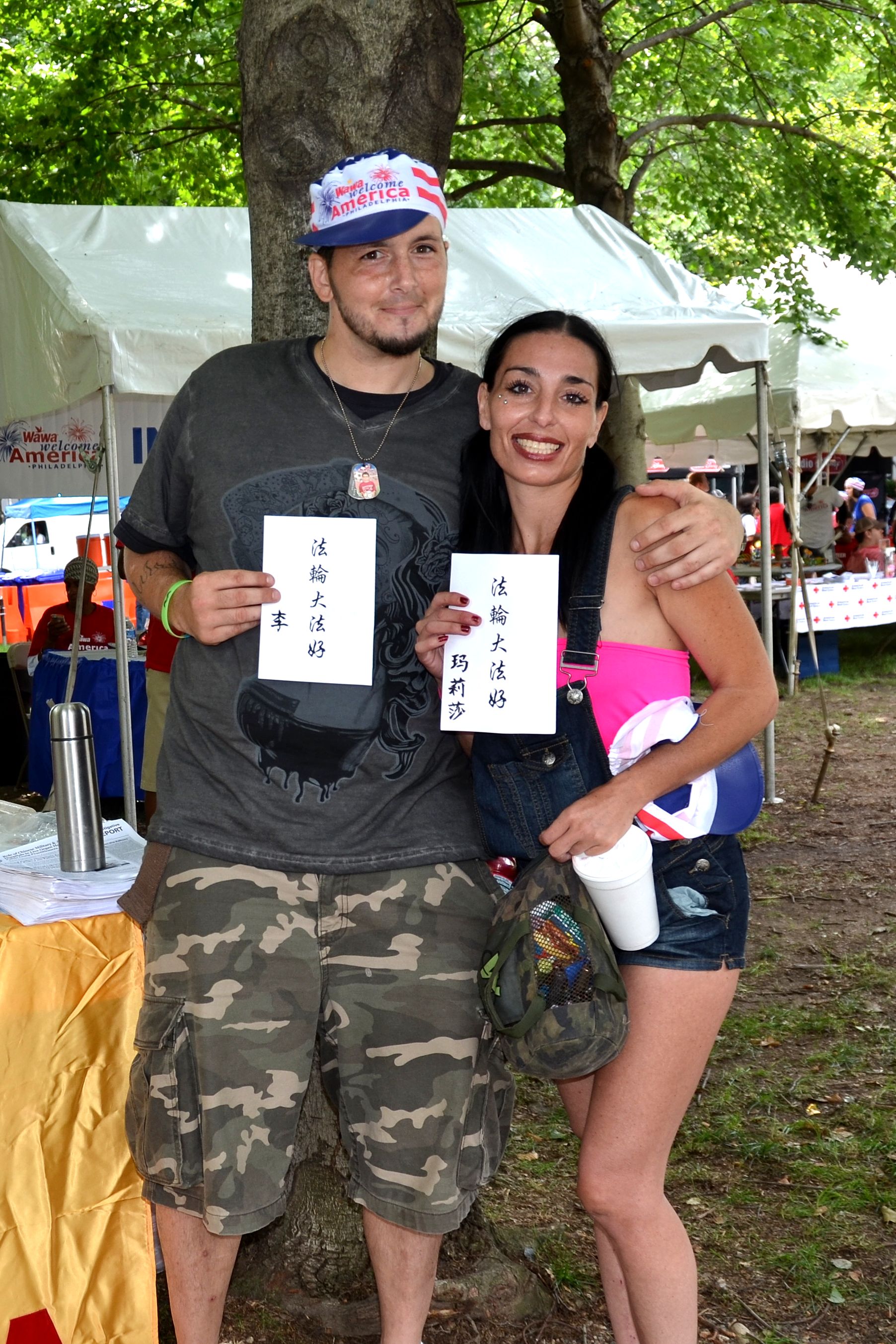 Lateeno先生和女友Coetez来自新泽西州。他们初次听闻法轮功学员遭受中共活摘器官的严酷迫害。Lateeno先生说,这些骇人的事实象一把剑穿到自己的心里。他对法轮功学员充满了同情。Coetez女士关切地询问281号决议案是否得到更多人的支持。当她得知有超过百位美国国会议员和成千上万的美国民众已经签名支持281号决议案,Coetez女士表示十分欣慰,她希望这场无理迫害早日结束。