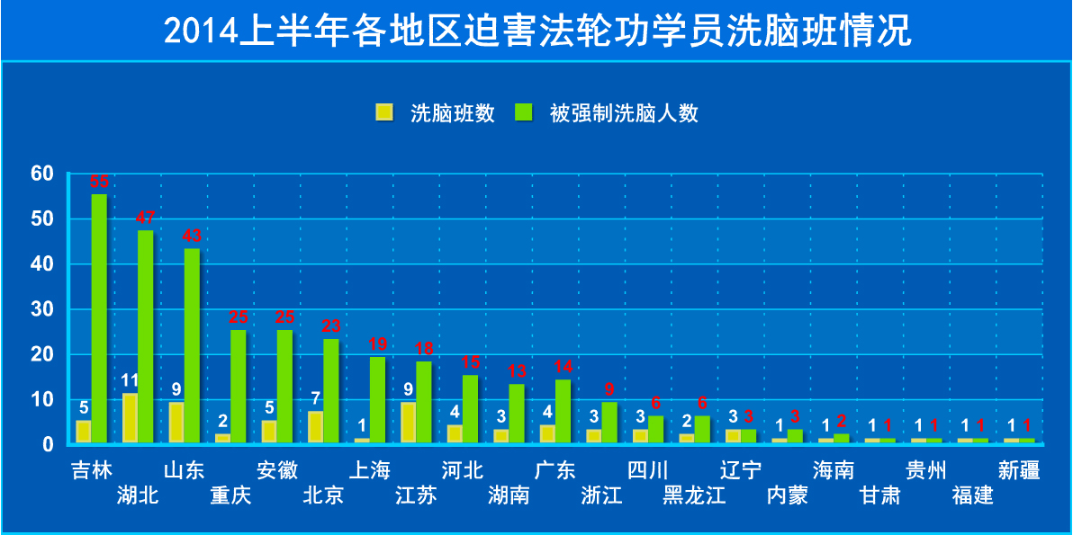![]() 图 2014年上半年各地区迫害法轮功学员的洗脑班情况 |