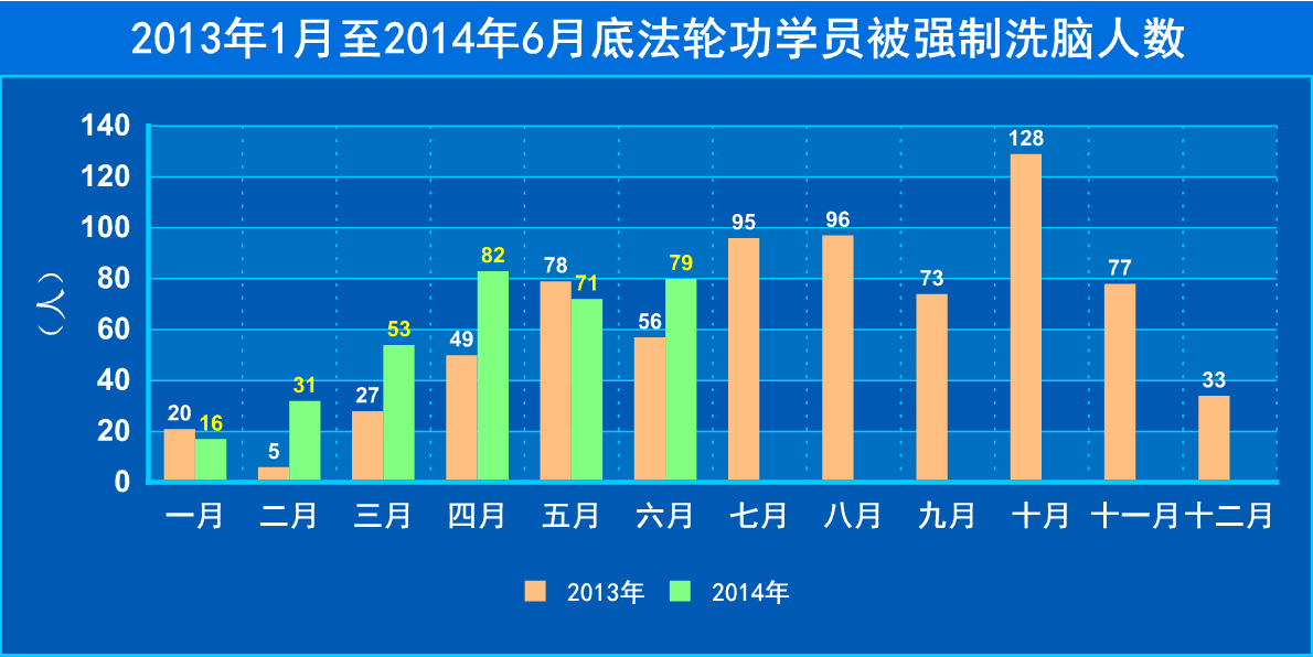 ![]() 图 2013年1月至2014年6月底法轮功学员被强制洗脑人数 |