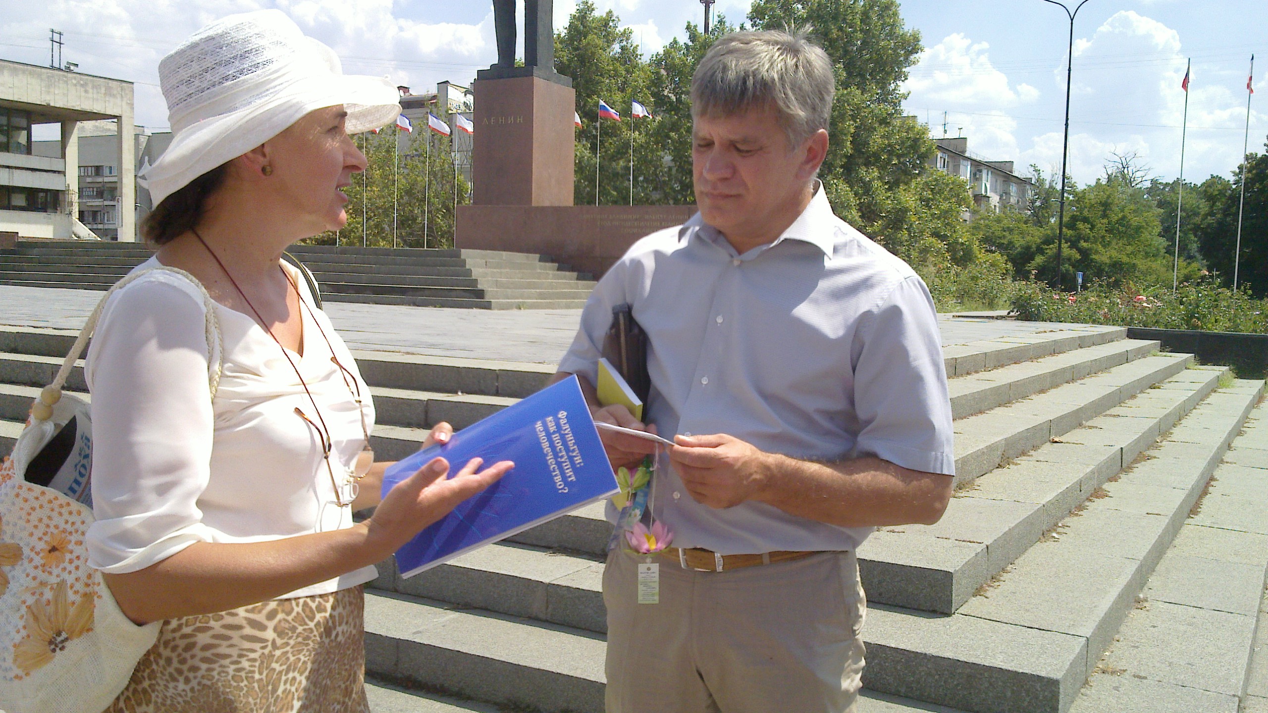 ![]() 克里米亚体委的主要负责人听法轮功学员讲真相,并感谢法轮功学员的参与 |