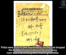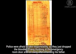 张慧东说:“理由是很简单:因为他们从医生口里得知,这个人已经残废了。因为当时我的腰椎骨三、四、五椎粉碎性骨折,双脚外踝骨粉碎性骨折,左脚跟粉碎性骨折,眉骨骨折,鼻骨骨折,四颗牙齿也摔断了,浑身都是血。并且因为(公安)殴打过程中,右眼肿得特别高,他们以为,医生当时也说,这人肯定残废了,得终生拄拐了,看这个样子。”