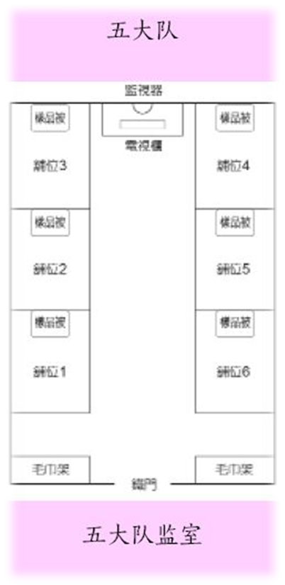 专门迫害法轮功学员的五监区位于老楼四楼,东部为严管区,南部为宽松区,东南部各有十一个监室,每个监室十八平米,有十二个床位。监区划分为三组:攻坚组,巩固组,回归组,另外还专设监控指挥部,二十四小时监视每个监室。