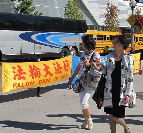 繁华的景点自然是法轮功学员让人们明白真相的好地方。“法轮大法好”、“世界需要真善忍”的横幅格外醒目。许多大陆来的华人一下车就会惊喜地大声说:看,法轮功。许多西人会在横幅前合十、拍照,有的表示要学功。更多的人们了解真相后签名谴责中共迫害法轮功,呼吁制止中共活摘法轮功学员器官。