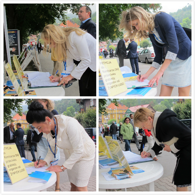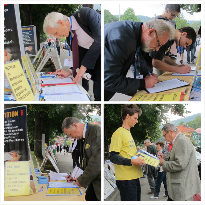此外来自捷克、斯洛伐克、匈牙利、乌克兰、俄罗斯、阿塞拜疆、立陶宛、美国、英国、奥地利、荷、兰、西班牙、葡萄牙、意大利、比利时、瑞典等国家参会的专家代表,议员、政要、国际著名公司总裁、医生、记者、翻译及会场工作人员也都在征签表上签名反对中共活摘器官罪行。