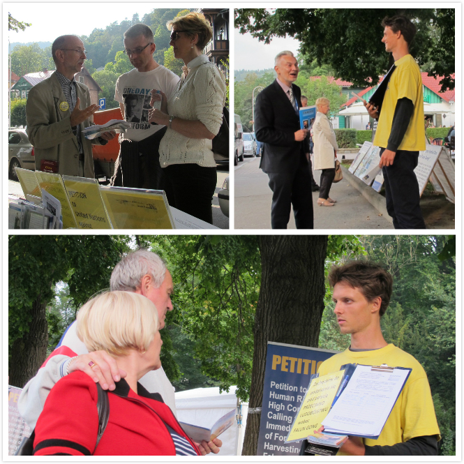 一位来自华沙的游客Zbigniew先生告诉法轮功学员说 :“我昨天没有签名,是因为我不能相信如今世界里还有活摘修炼人器官的事情发生,尤其是政府行为,尽管我看了你们法轮功的传单和展板,我实在难以相信,所以当天晚上上网查看,没想到看到了更多的中共对法轮功的残酷迫害事实真相,我差不多一夜都没睡觉,所以今天我一定要来签名,这种事情必须立即停止,愿神保佑你们。”