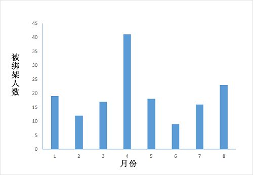 表1、2014年1—8月湖南省法轮功学员被绑架人数统计