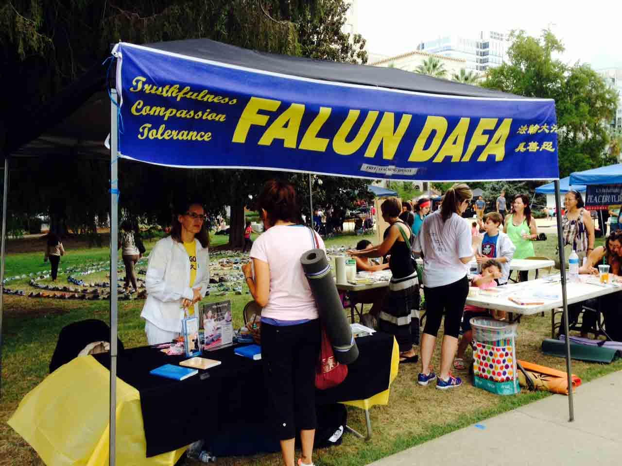 该活动是在加州州政府大楼前的草坪上举行,当地的法轮功学员是第一次参加,由于当天同时还有其它的活动在州政府大楼外举行,结果法轮功展位前来了很多民众了解真相。