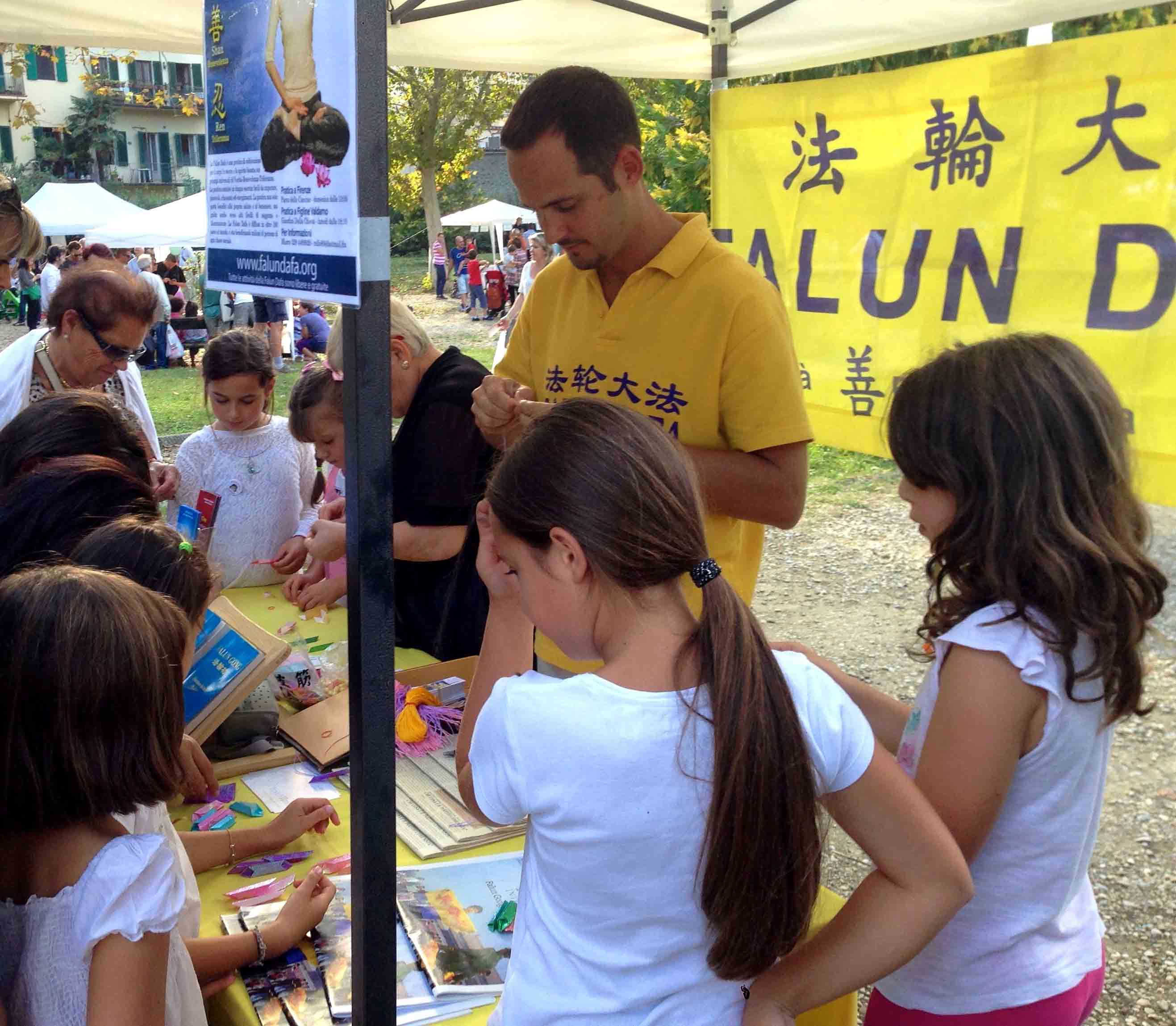 九月十三日和十四日,是佛罗伦萨每年一次的由市政府和儿童与环保健康发展组织主办的“儿童与大自然”的文化节,当地法轮功学员应主办方的邀请参加了活动。上百个家庭带着他们的孩子陆续前来,参加了为期两天的活动。当地法轮功学员展示了功法,并教小孩叠纸莲花。