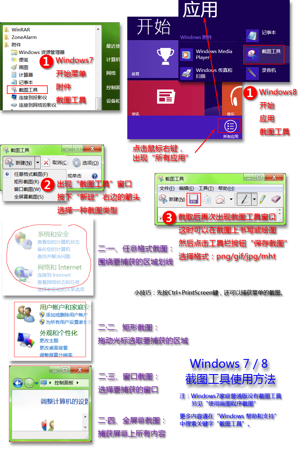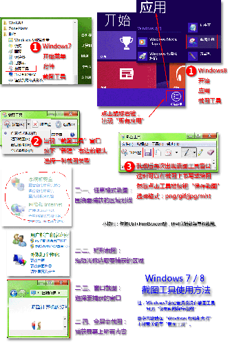 使用Windows7/8系统自带的截图工具程序,简单方便,而且不用其它第三方软件。这里提供两张配图使用说明。