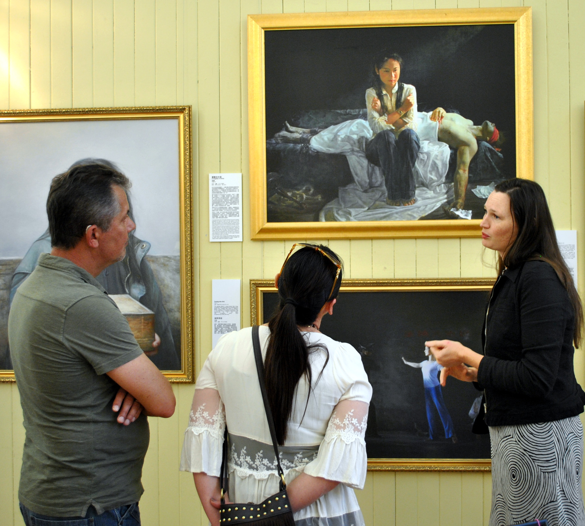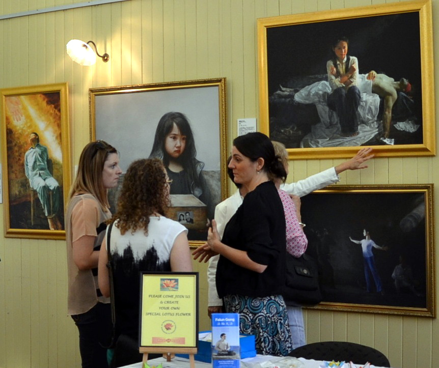 两天的时间里,一幅幅有故事的写实画作令数百人对法轮功有了深刻的了解。