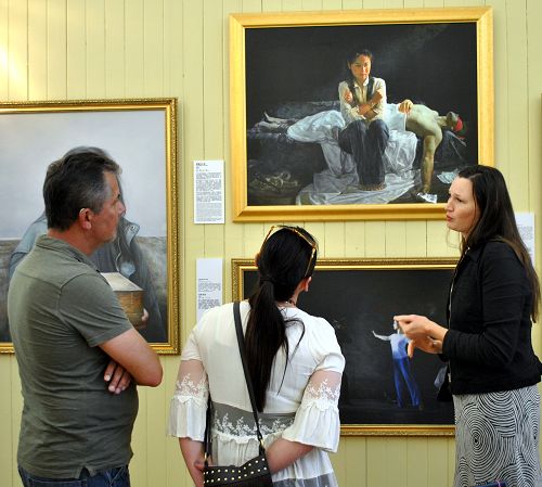 【明慧网二零一四年九月三日】(明慧记者陈心宁澳洲布里斯本采访报道)二零一四年八月三十、三十一日这个阳光明媚的周末,澳洲布里斯本库塔山(Mt Coot-tha)的瑞德艺术工作室(Richard Randall Art Studio)再次迎来了巡回全球的“真善忍国际美展”。通过艺术作品,人们感受到法轮大法的祥和美好,了解到中共迫害的残酷,有人从中领悟人生真理,更有人希望走入法轮大法修炼。