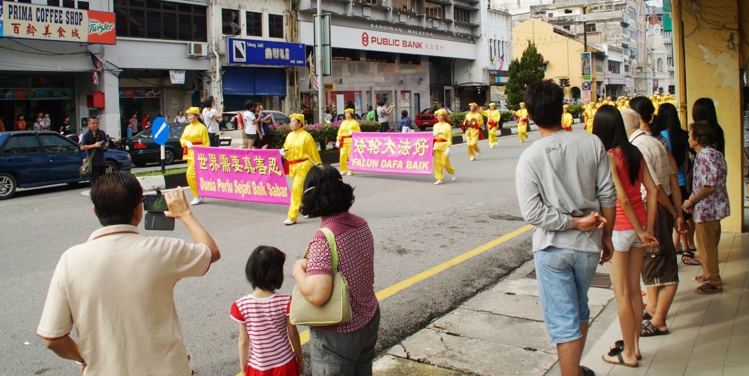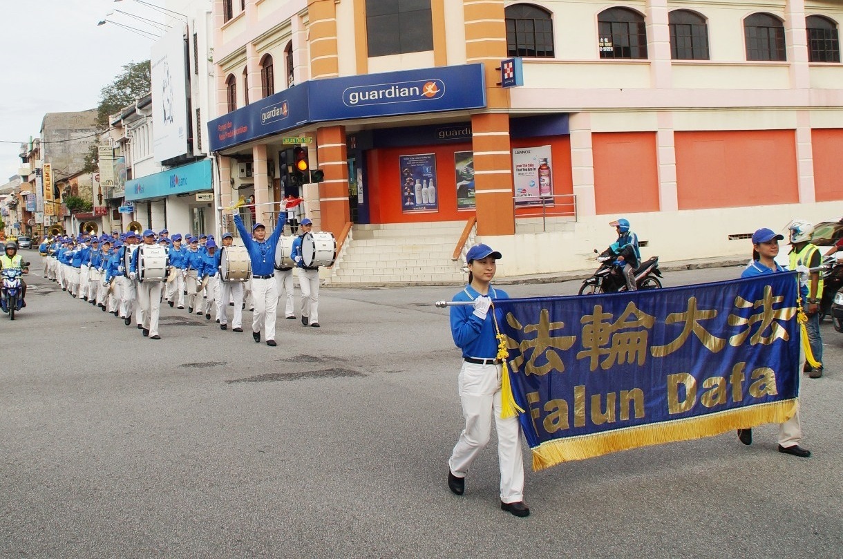 【明慧网二零一四年九月三十日】二零一四年九月二十一日是国际和平日,马来西亚法轮功学员参与了由“马来西亚和平联盟”(Partners for Peace Malaysia)团体,在霹雳州和平城镇——太平(Taiping)举行的“和平之旅”盛大游行,同时把法轮大法的美好带给这一方民众。法轮功的阵容整齐而又充满祥和,成为当天游行最受瞩目的队伍,所到之处获得民众的欢迎。