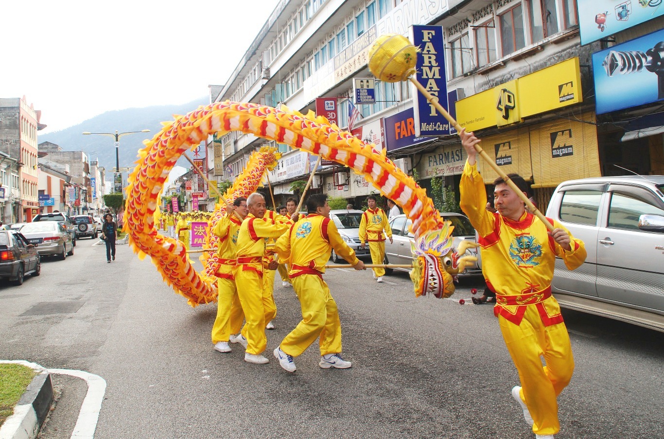 法轮功游行队伍参加“和平之旅”盛大游行环绕整个太平市镇