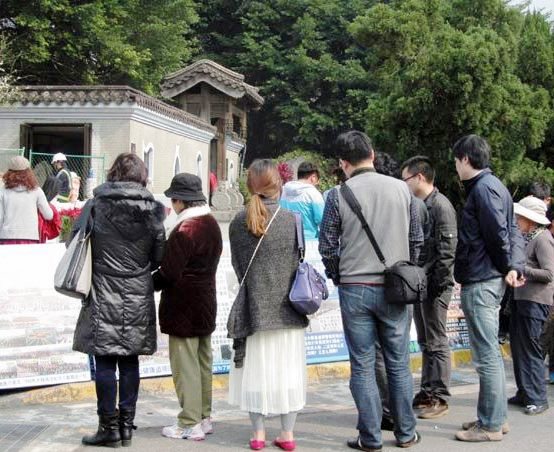 一群群中国人团体三退,有的人握着退党义工的手,连声感谢:谢谢,谢谢。不到二小时,已有约一百三十人三退了。退党景点义务负责人高女士说:这个景点的特点是集体退的中国游客多。有一次, 一团二十多人都用真名退党。还有一天,她一人劝退了大约五百四十人。
