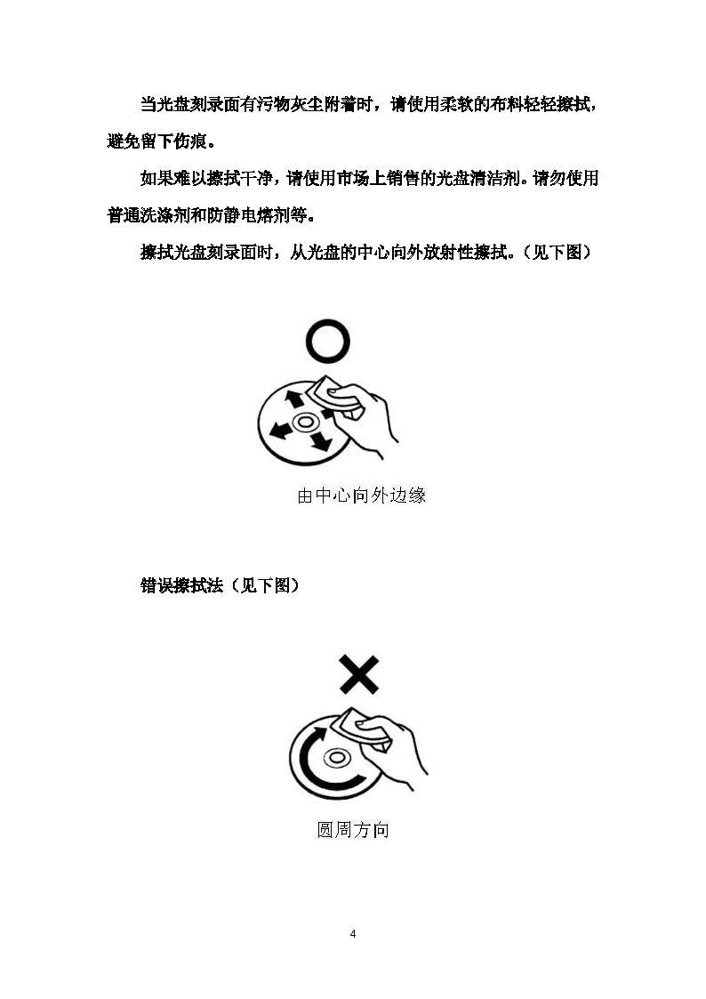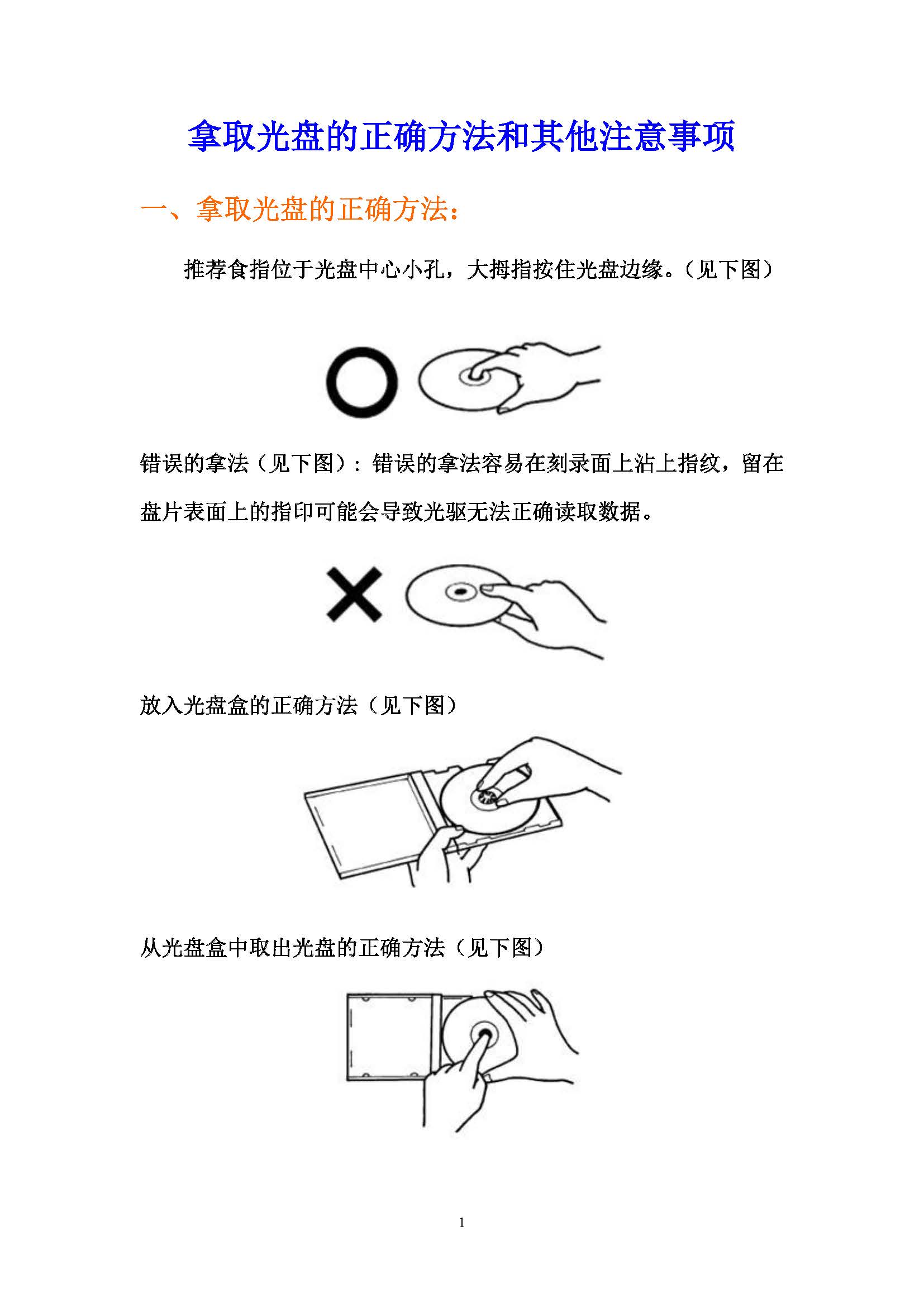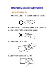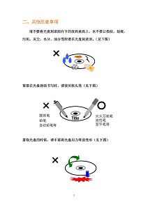 拿取光盘的时候需要注意一些事项,比如不要将光盘刻录面向下的放到桌面上,也不要让指纹,划痕,污垢,灰尘,水分,油分等附着在光盘刻录面,因为 留在盘片上的划痕、污垢、指印等可能会导致光驱无法正确读取数据。