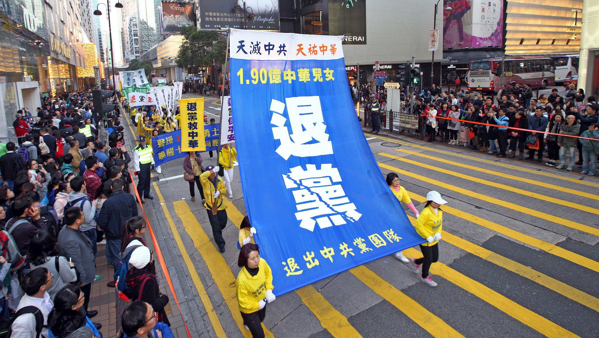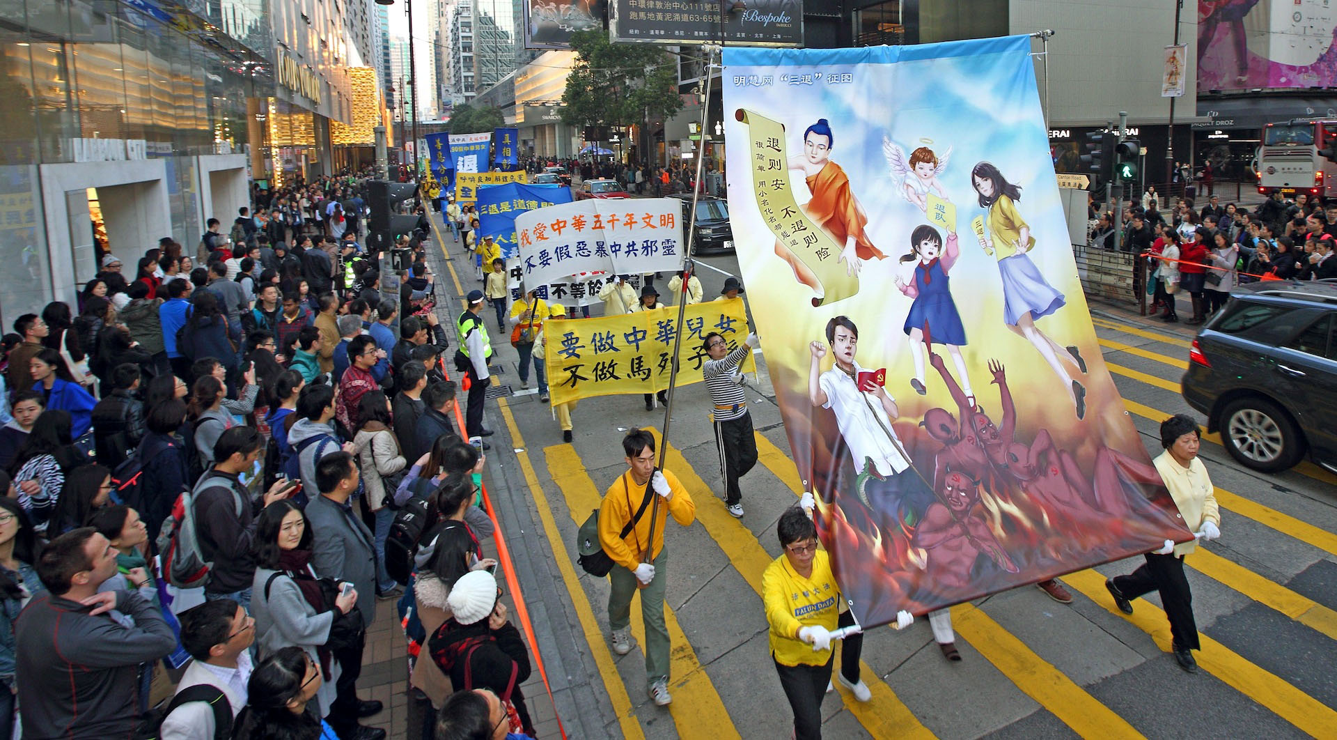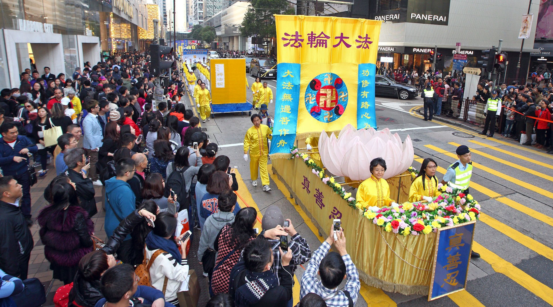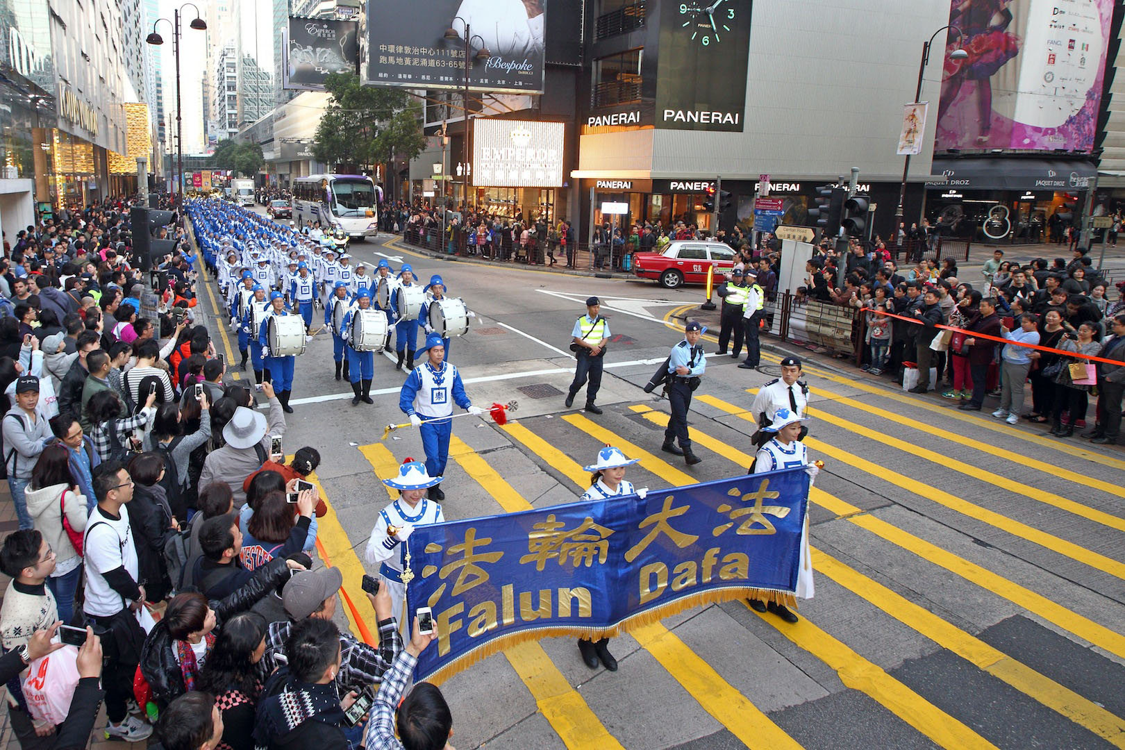 阵容庞大的游行队伍,由军威壮阔的天国乐团引领下,从长沙湾游乐场出发,沿着长沙湾道、弥敦道、广东道,途经旺角、佐敦抵达尖沙咀天星码头,历时约三个小时。沿途吸引行人、游客纷纷驻足观看或拍摄游行队伍及标语,赞誉及支持的呼声不绝于耳。许多中国大陆游客在这次活动中把握良机,请法轮功学员帮忙声明三退(退出中国共产党团队组织),获得美好未来的新生契机。
