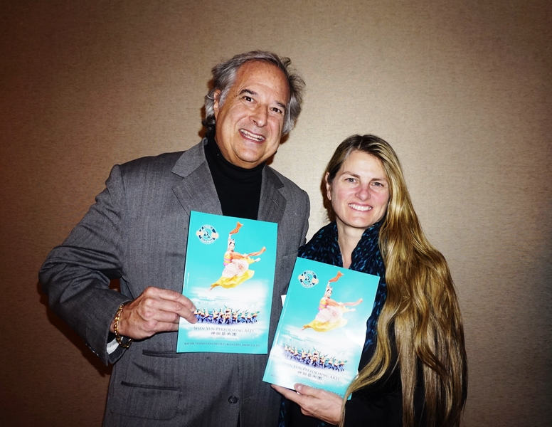 雷恩太太Bonnie Comley也在美国戏剧界集制作人、作家和演员于一身,曾三次获得托尼奖。神韵晚会中水袖舞蹈的柔美、优雅和飘逸令她叹为观止。她对神韵艺术的超强表现力惊叹不已,“精彩的视觉效果、栩栩如生的动态天幕、妙趣横生的节目解说,我完全没有理解上的障碍,我能完美地理解和接受所有的一切,这真是一个令人惊叹的大手笔制作!”