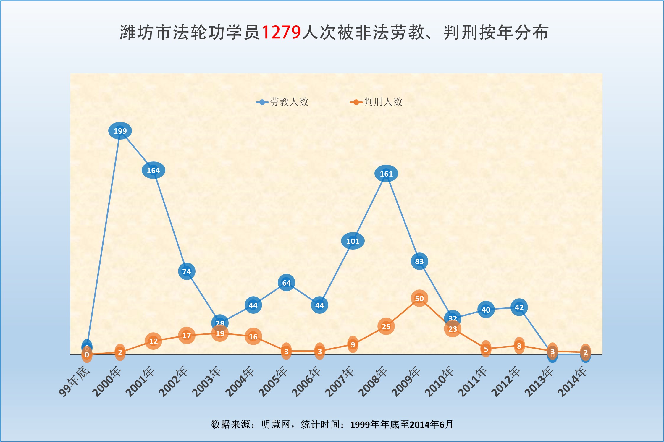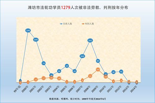 潍城区70人次,占潍坊市的5%。其中:被非法劳教62人次,被非法判刑8人次;