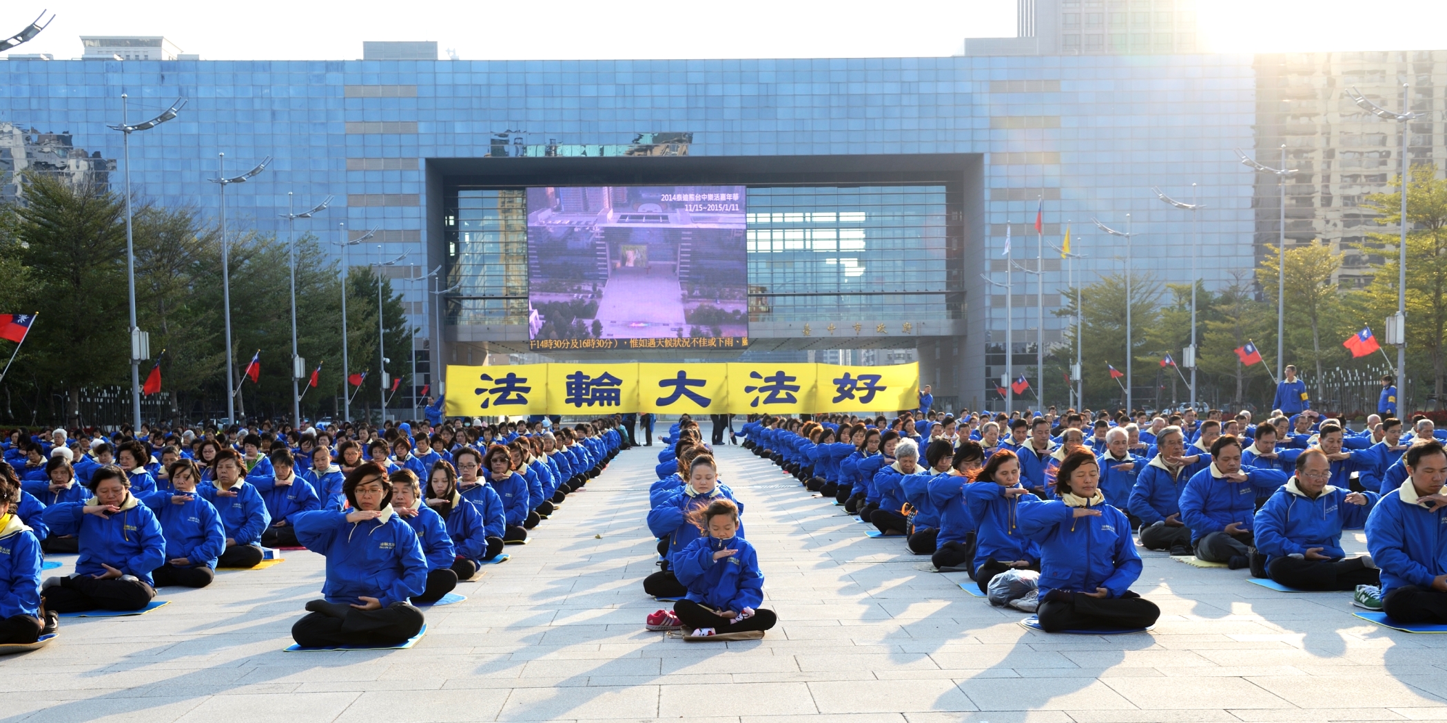 ![]() 图2-3:二零一五年元旦,台中市法轮功学员于市政府广场上炼功弘法。 |