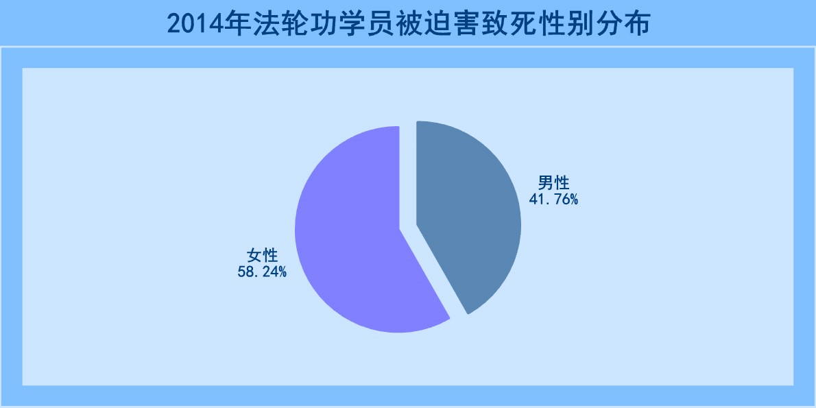 ![]() 图3:二零一四年被迫害致死法轮功学员性别分布 |
