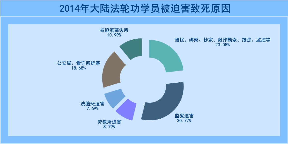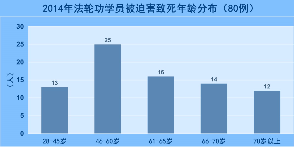 也就是说,二零一四年在中国大陆:每两个月有十五名法轮功学员被迫害致死。