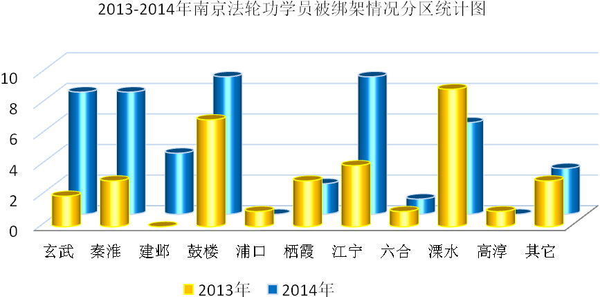 | 2013-2014年南京法轮功学员被绑架人数统计表 | |||