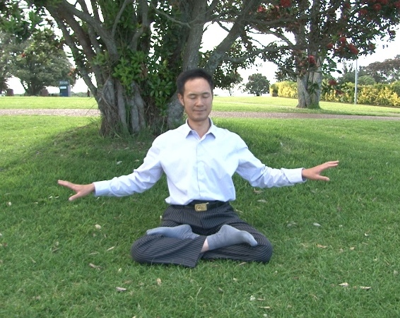 ![]() 周先生(Joe Zhou)在炼法轮功第五套功法 |