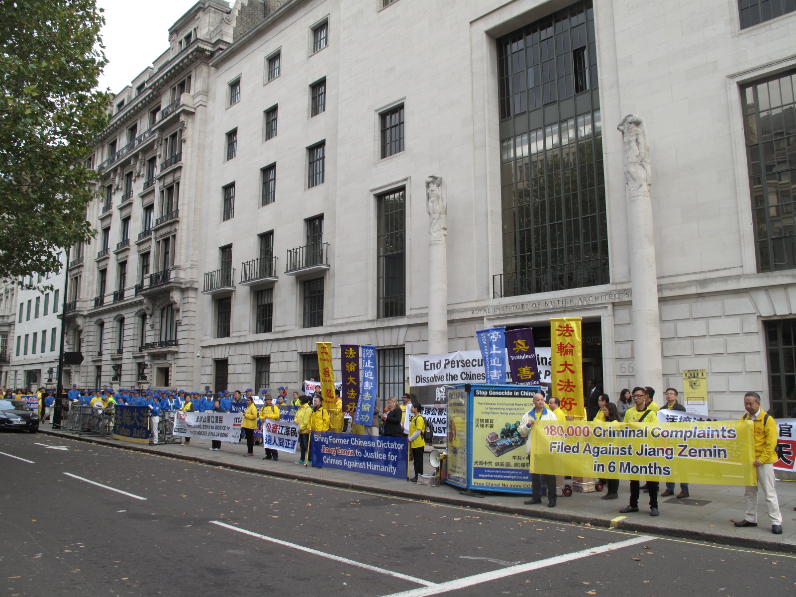 法轮功学员十月十日全天的活动包括在伦敦中使馆对面举行新闻发布会、在伦敦中心街道和伦敦唐人街游行、在圣马丁广场举行集会和炼功弘法以及在中使馆对面举行集体烛光守夜和平抗议等。这一系列活动得以让更多民众了解了法轮功真相,并加入传播真相、反迫害、谴责中共活摘法轮功学员器官罪恶以及声援全球公审江泽民的正义队伍。