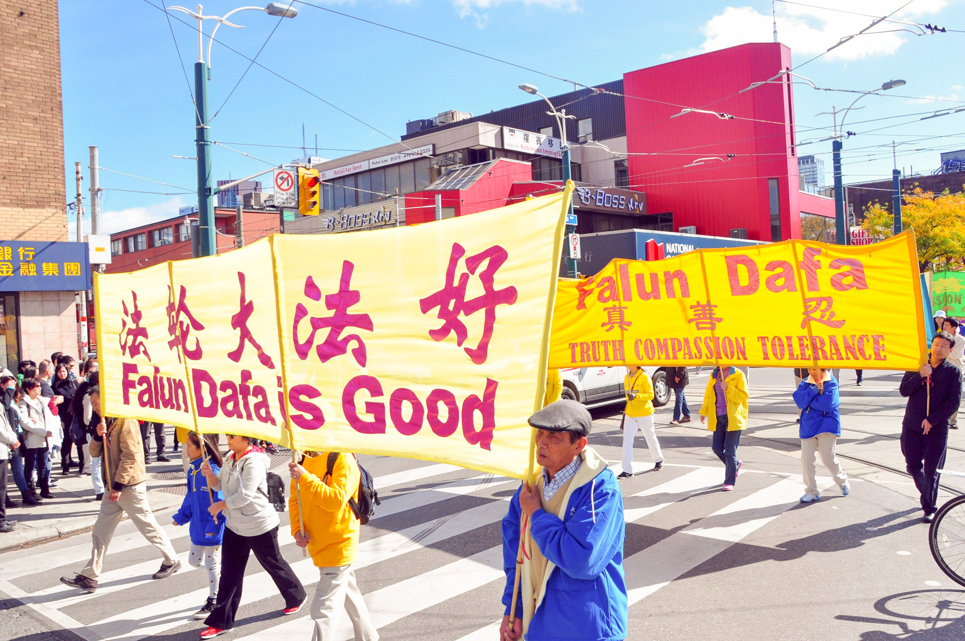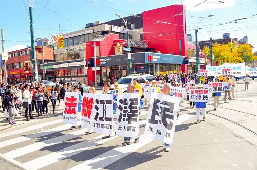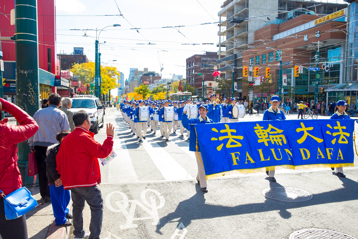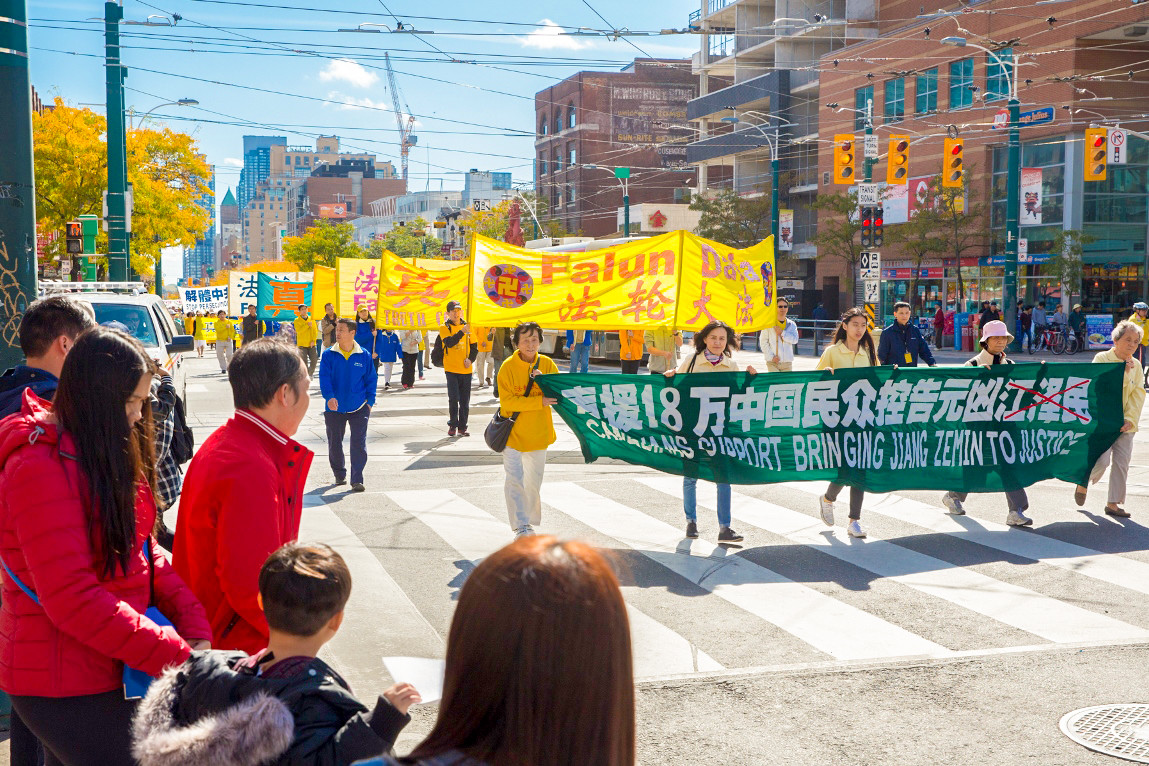 ![]() 图1-9:二零一五年十月十日中午,多伦多法轮功学员在市中心举行今年诉江以来的第二次诉江大游行,所到之处引起民众的关注,很多民众表示支持并在制止活摘的请愿信上签名。 |