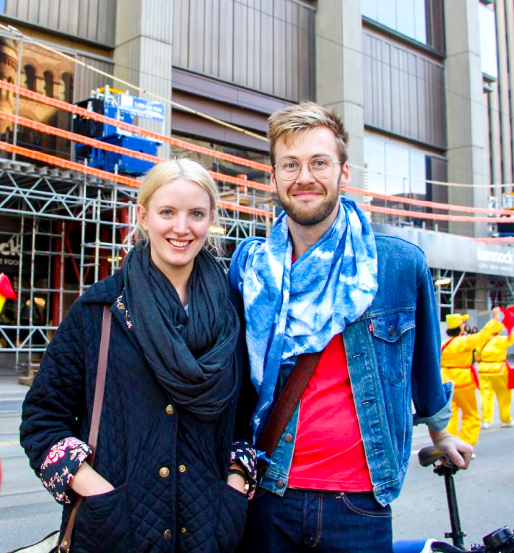 ![]() 图14:来自美国的David和俄国的Marina观看了游行的全程,他们表示要让更多的人知道和参与诉江,尽快结束这场迫害。 |