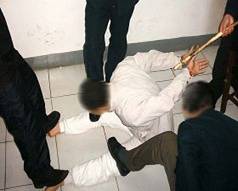 洗脑转化班,强制我们必须打罪犯报告才许去上厕所。9月份的一天早上集合排队时,我还是不戴罪犯标志,不打罪犯报告,守我的犯人周志琴等在王监区长、高监区长的授意下,和多个犯人轮流拖起我在几百人的坝子里跑圈,她们扯我的头发,掐我身上的肉,给我吐口水,无数次把我拖倒在地上,鞋子被磨穿,裤子被磨破,地上的碳渣子刺进了我膝盖的肉里。到了中午,高监区长把我弄到楼上继续逼我打罪犯报告,我坚持自己没有犯罪、依然不打,王监区长说:“你看,这是法绳,我今天就用这绳子把你绳之以法”。