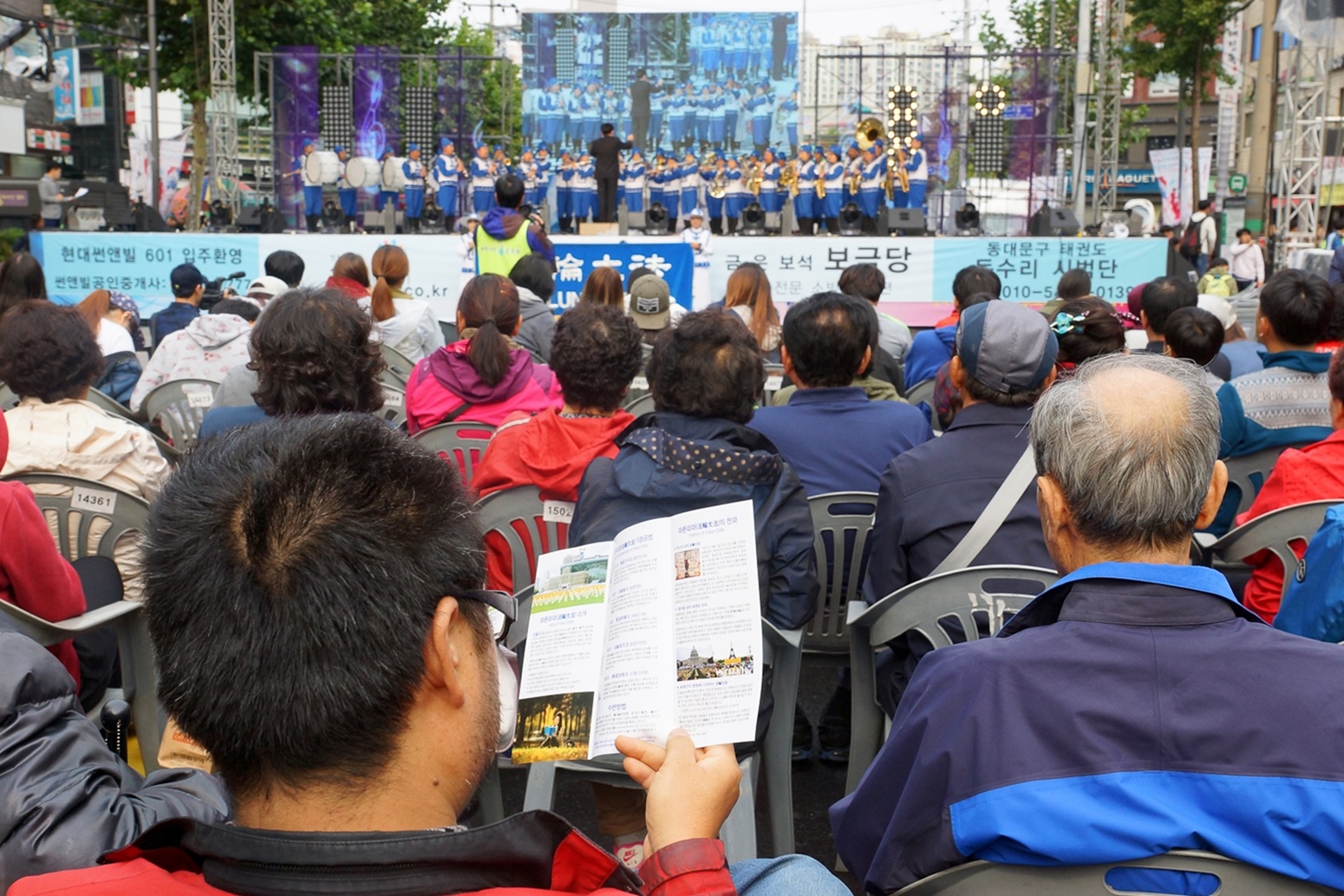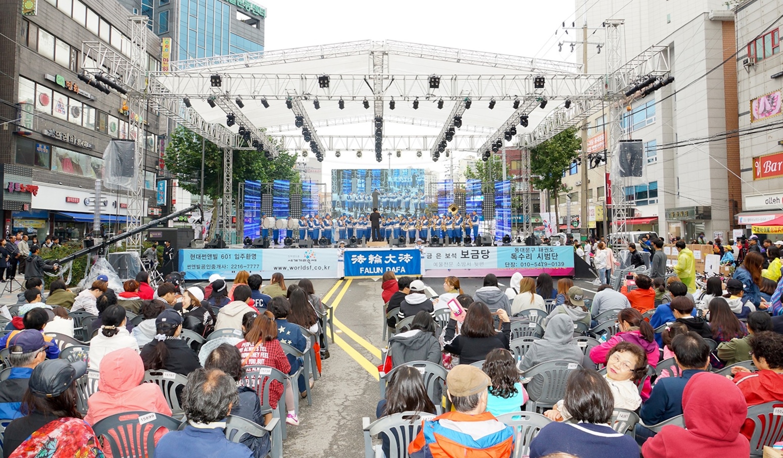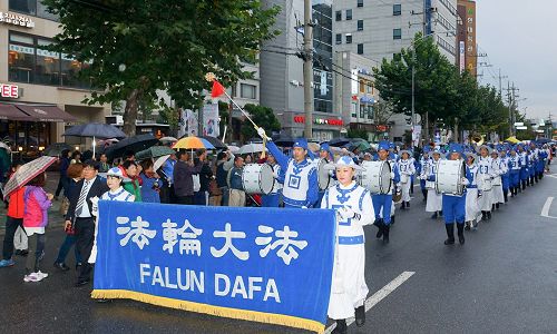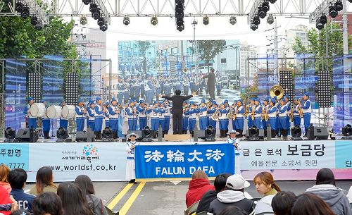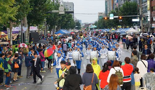 【明慧网二零一五年十月十五日】二零一五年十月十日和十一日,为期两天的首尔市大型庆典在韩国首都中心举行, 韩国天国乐团参加了该庆典活动, 在庆典点上,天国乐团所演奏的雄壮乐曲,不仅震撼了在场观众,就连韩国媒体也报道称:看天国乐团演奏游行就像梦幻一般。