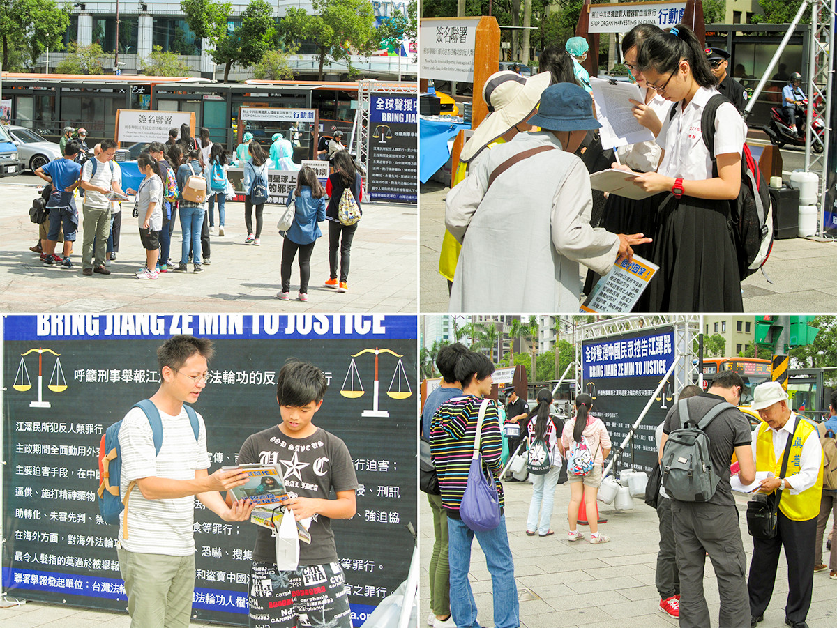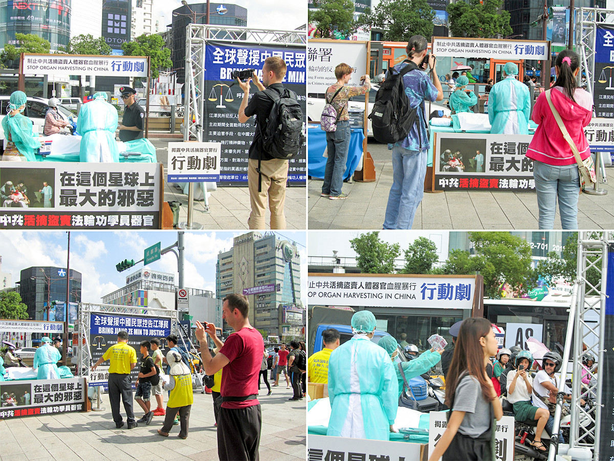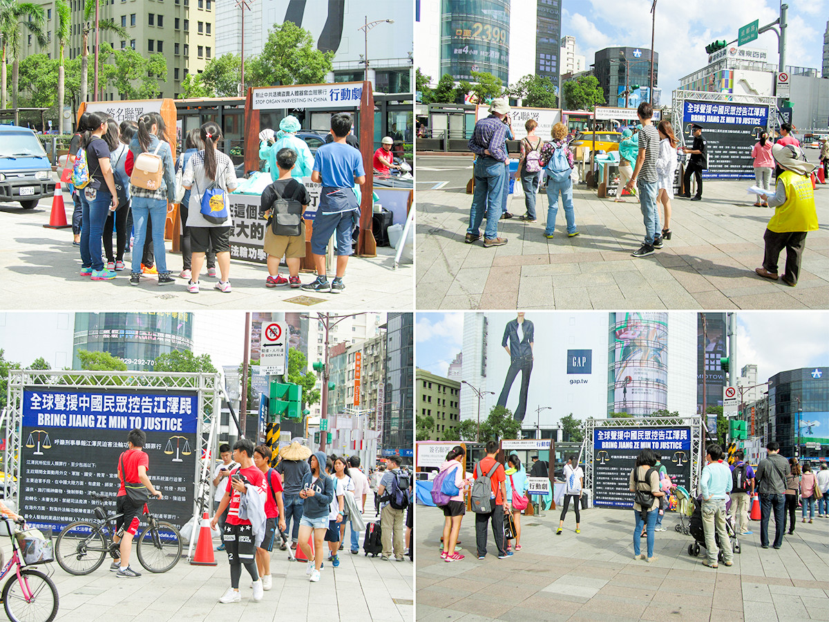 【明慧网二零一五年十月二十一日】(明慧记者郑语焉台湾台北采访报道)二零一五年十月十七日,台北地区法轮功学员在西门町以模拟演示行动剧,揭露中共活摘法轮功学员器官、盗卖牟利的邪恶暴行,向过往行人、旅客讲述法轮功真相,传递中国民众控告发动迫害法轮功的中共前独裁者江泽民(简称诉江)的讯息,并征集签名,以“刑事举报江泽民迫害法轮功犯下反人类罪”的实际行动声援诉江大潮。