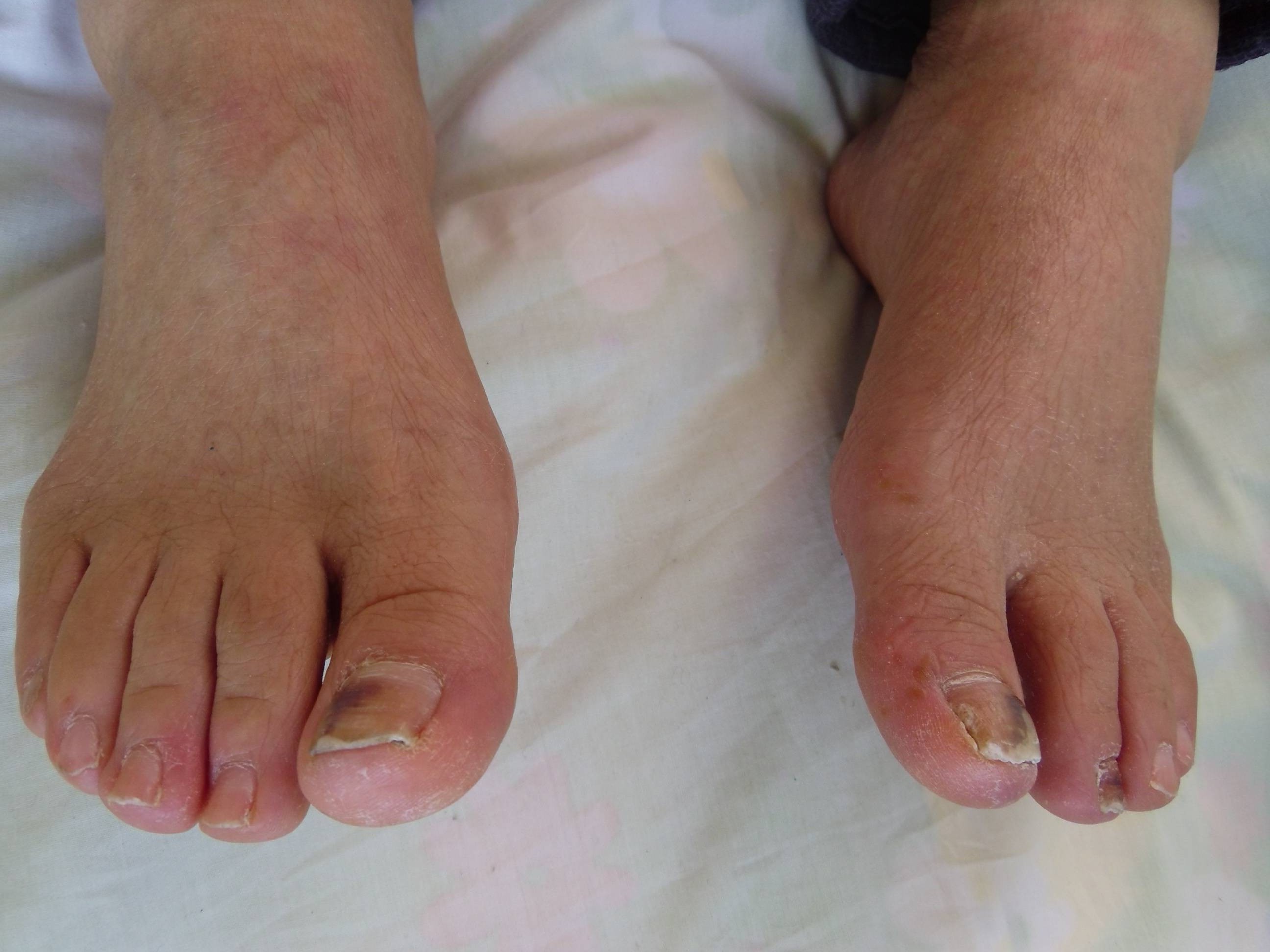 ![]() 从监狱回家后,双脚一点也没有触碰过,脚趾盖变黑色 |
