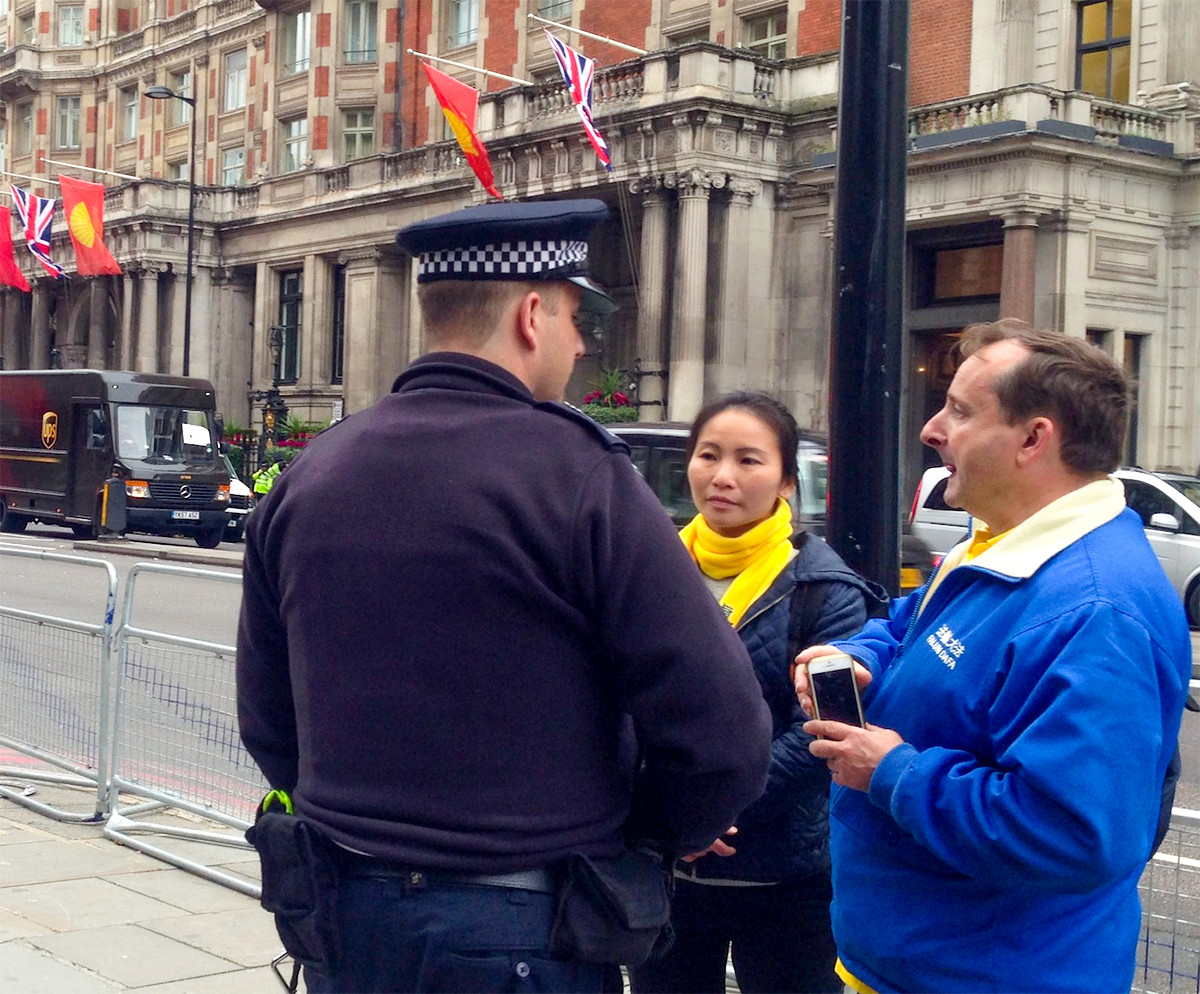 这位担任执勤任务的警察乐见法轮功学员的平和抗议顺利完成,并表示希望法轮功学员当天活动的诉求和心声能够被听到。法轮功学员问他是否清楚中共活摘器官,这位伦敦警察说自己已经知道了,他曾经在大英博物馆门前看到过法轮功学员摆放的谴责中共活摘罪行的真相展板。