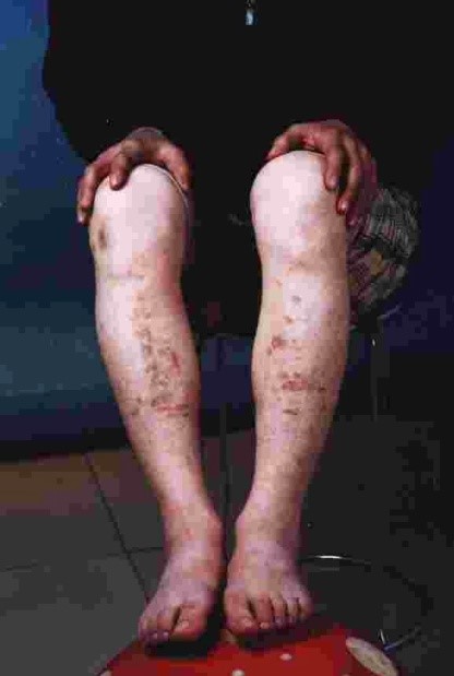 ![]() 被成翠贞(女)踢过的双腿,大约拍于2004年秋天被踢一年之后 |