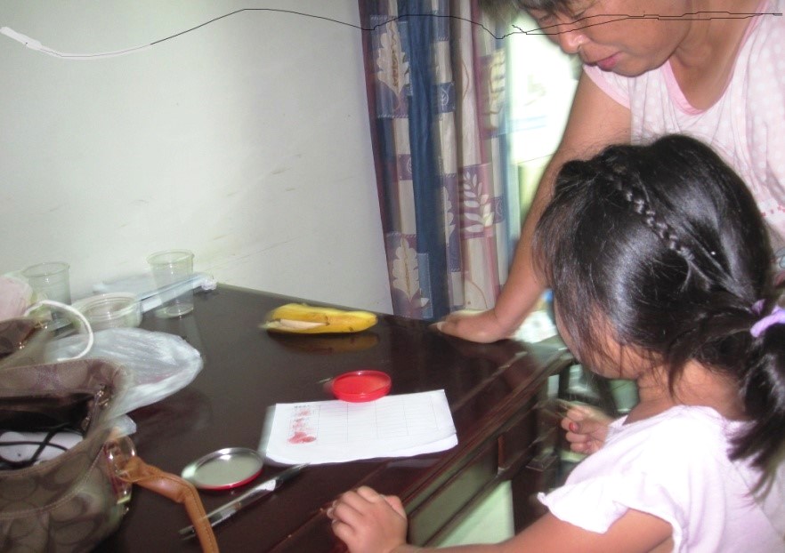二叔的老伴对孙女儿说:“小宝宝,奶奶帮你签上名,你也按个红手印,你的生命是法轮大法给的,如果没有法轮大法的救度就没有你。”可爱的小孩按上了红红的小手印。