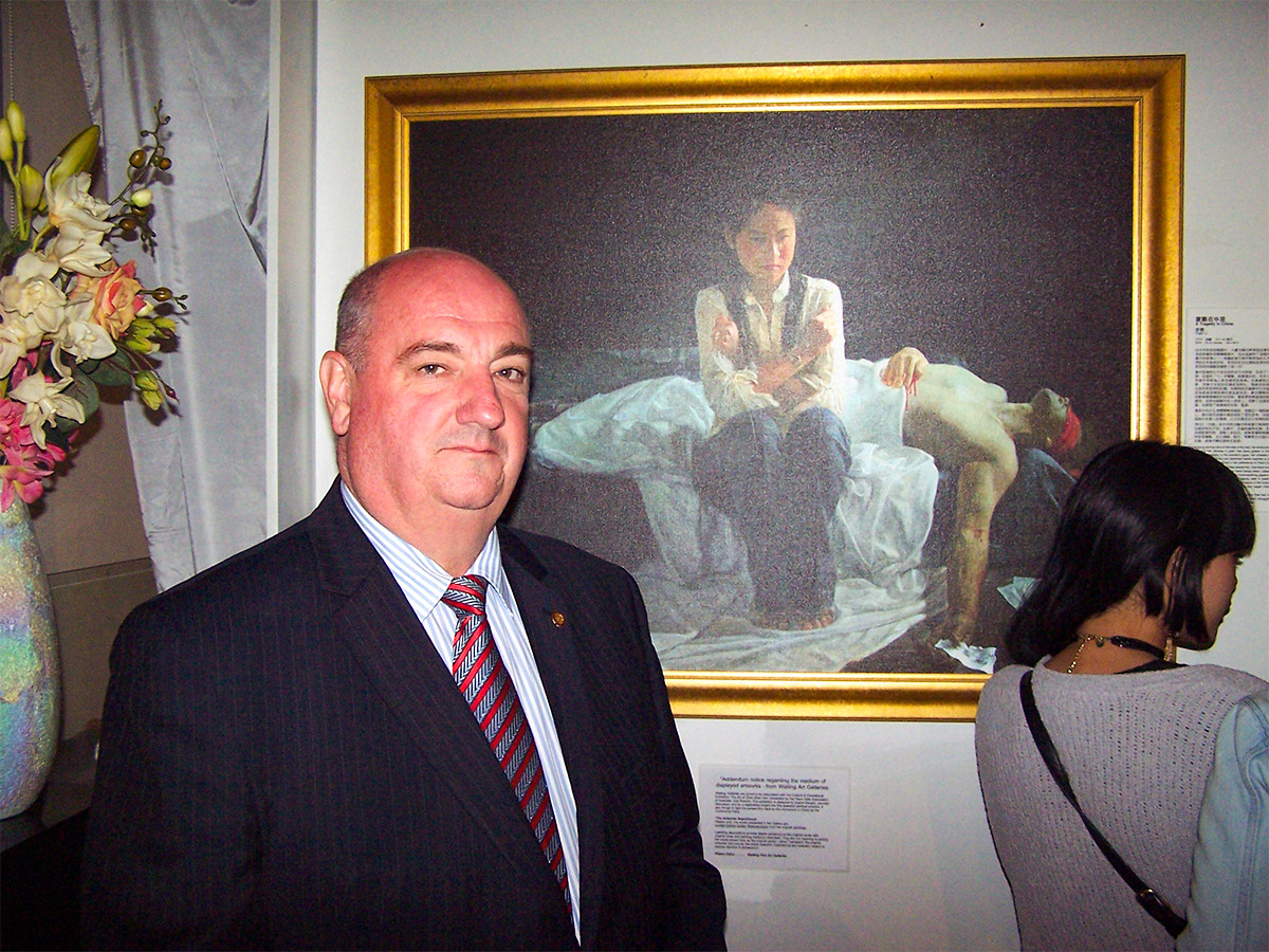 ![]() 图4:画家兼郝利画廊(Holly Galleries)的业主詹姆斯·郝利先生 |