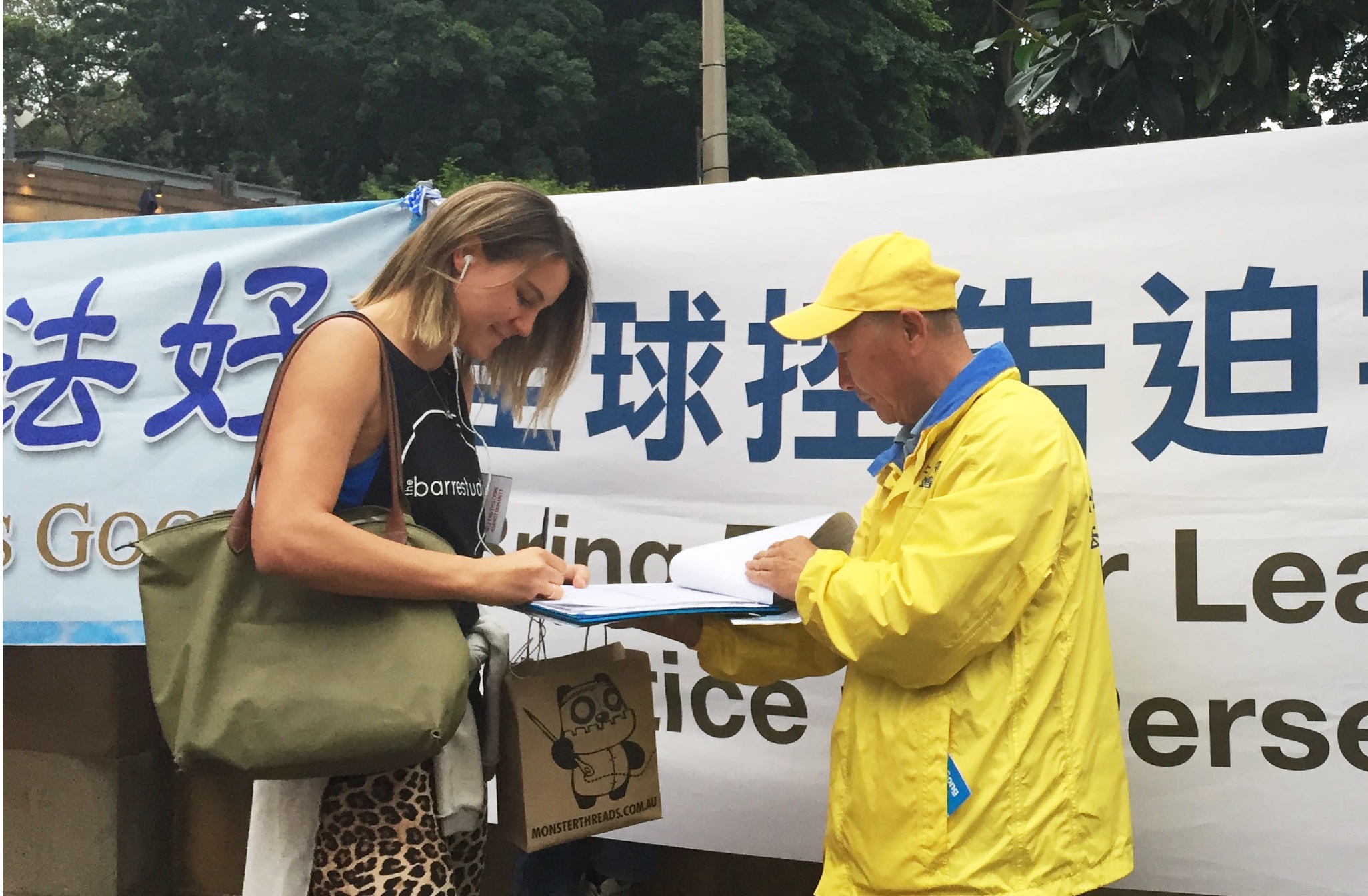 在附近上班的澳洲人迈克尔(Michael A)先生也表示多次看到这样的真相展示,但是真还不知是这么残酷的迫害。他表示:“这真的是非常不好的事,非常耸人听闻的事,所以你们现在做的事非常好,你们请路人一个一个的签名制止这场迫害,非常好。我衷心希望你们成功!”