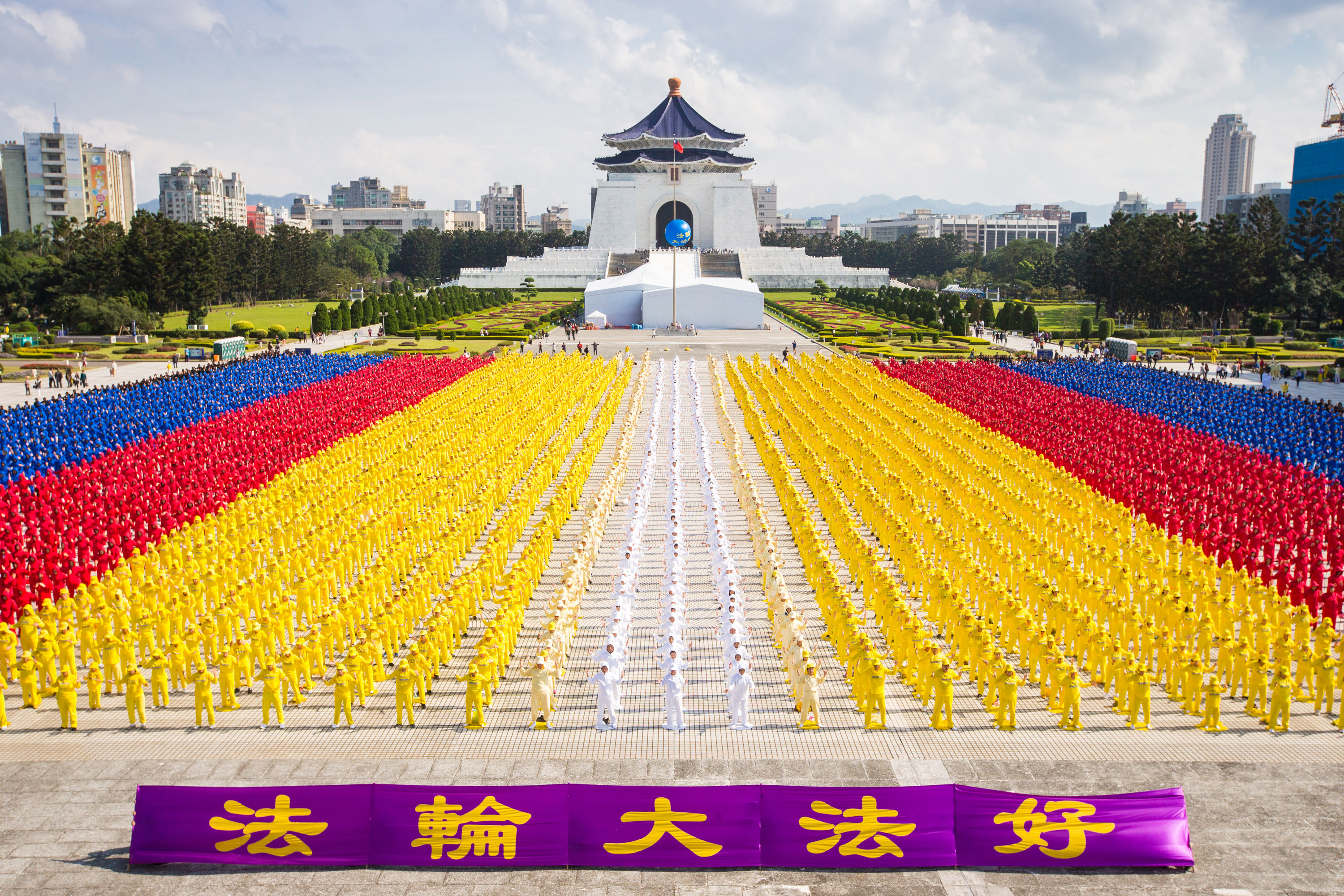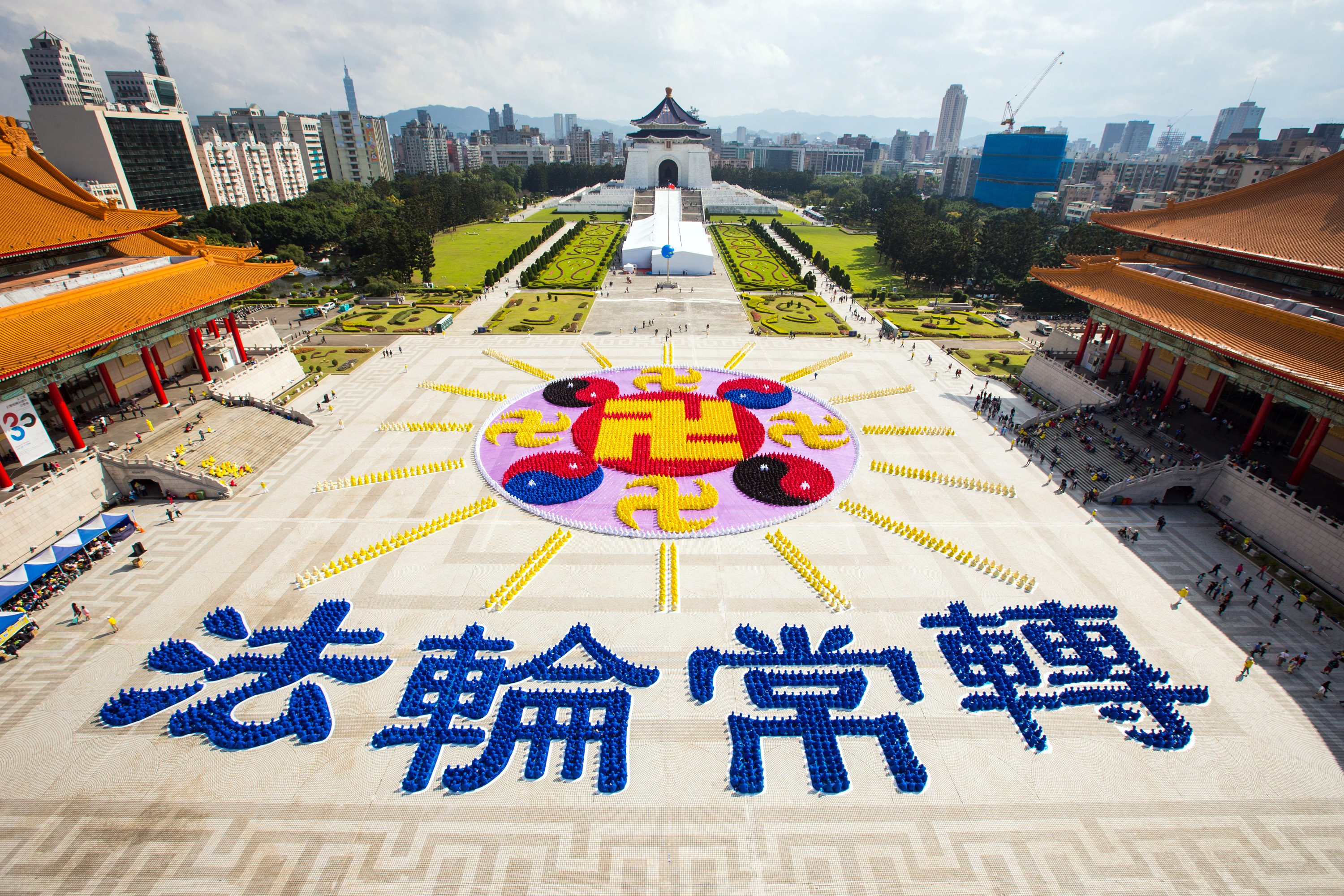 ![]() 图1:二零一五年十一月二十八日,六千多名法轮功学员在台北自由广场排出耀眼的“法轮”图形和“法轮常转”。 |