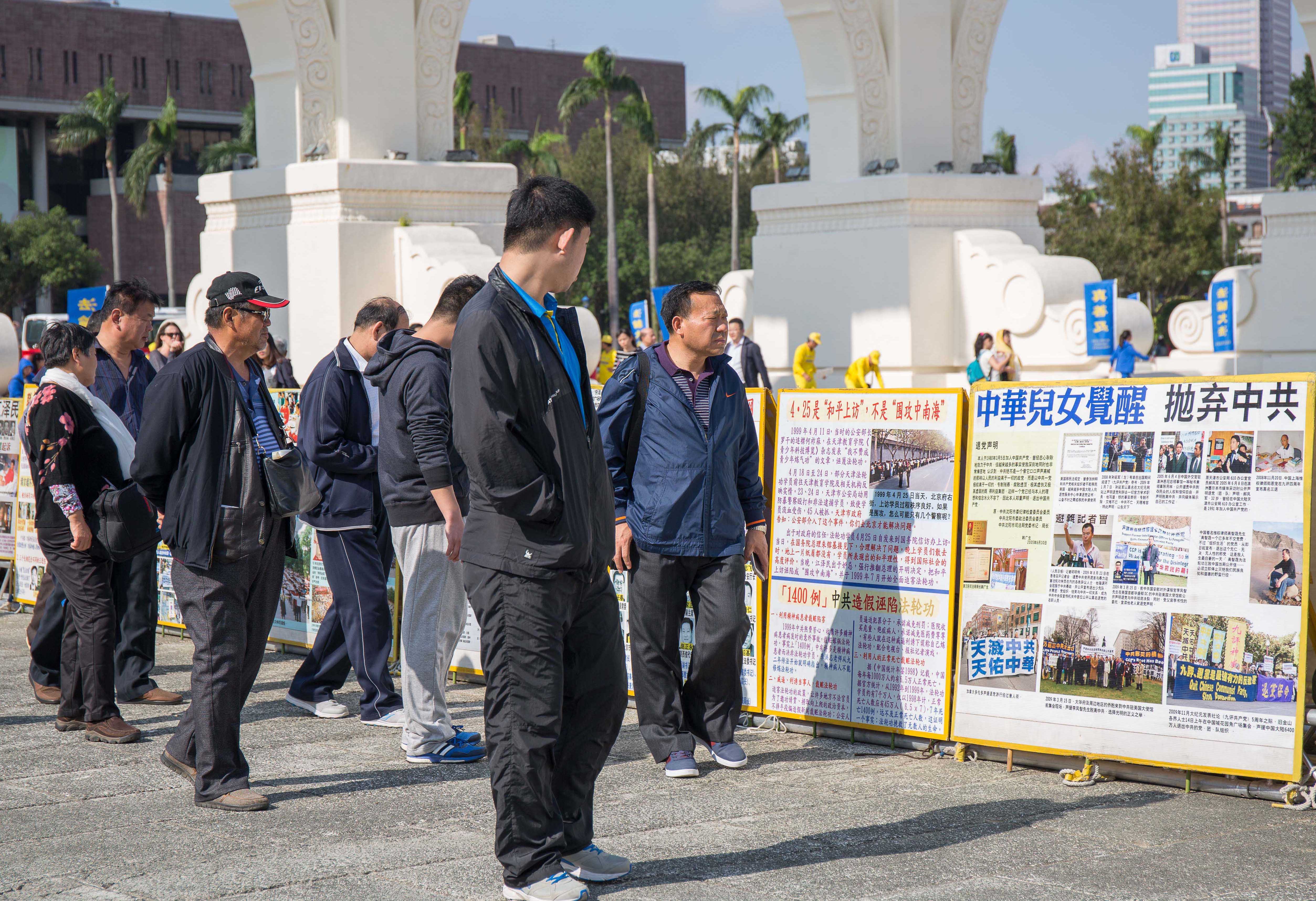 在自由广场牌楼下的真相展板,其中因参与迫害法轮功学员而遭恶报落马的中共官员名单特别吸引杜先生的目光。他说:“我以为他们都只是因为贪腐被抓,原来他们都有参与迫害法轮功!”杜先生感慨地表示,法轮功其实是很好的功法,“国内现在还是有人在炼,只是我没想到台湾也有这么多法轮功学员,挺羡慕台湾(的自由)。”