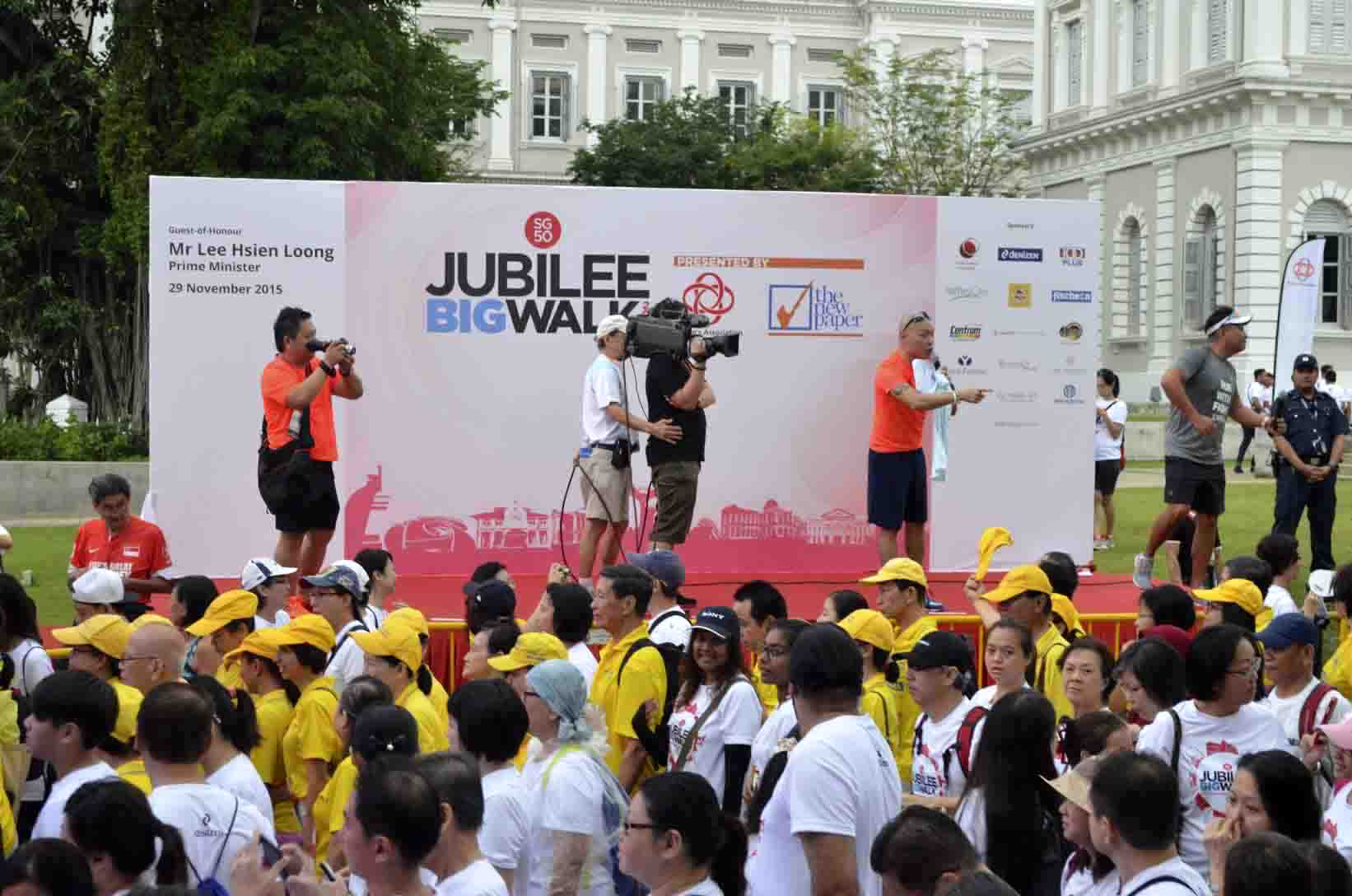 此次步行活动被称为“金禧大竞走”(SG50 Jubilee Big Walk),是为配合庆 祝新加坡建国五十周年而举办的。长达五公里的行程,以新加坡博物馆为起点,途经二十多个精心选取的著名地标,最终抵达滨海湾花园。人们可以在沿途领略新加坡的建筑风貌、风土民情和历史变迁;本地年长人士更可回顾年少岁月,追寻往昔故事。