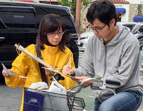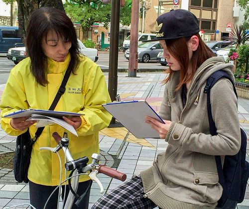 【明慧网二零一五年十二月十三日】二零一五年十一月中旬,法轮功学员在距离日本熊本二百多公里的宫崎县开展征签活动,声援中国民众起诉迫害法轮功的元凶江泽民。许多日本人了解了事件的详情后,立即签名支持。