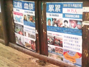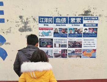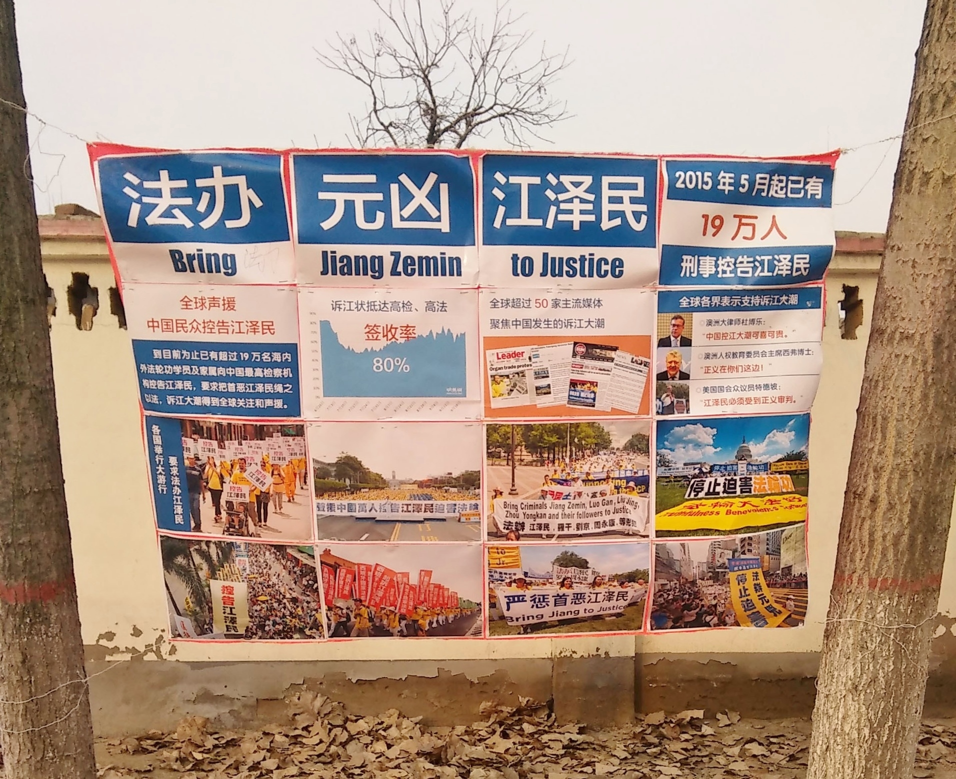河北省衡水市某县农村的诉江展板和真相不干胶